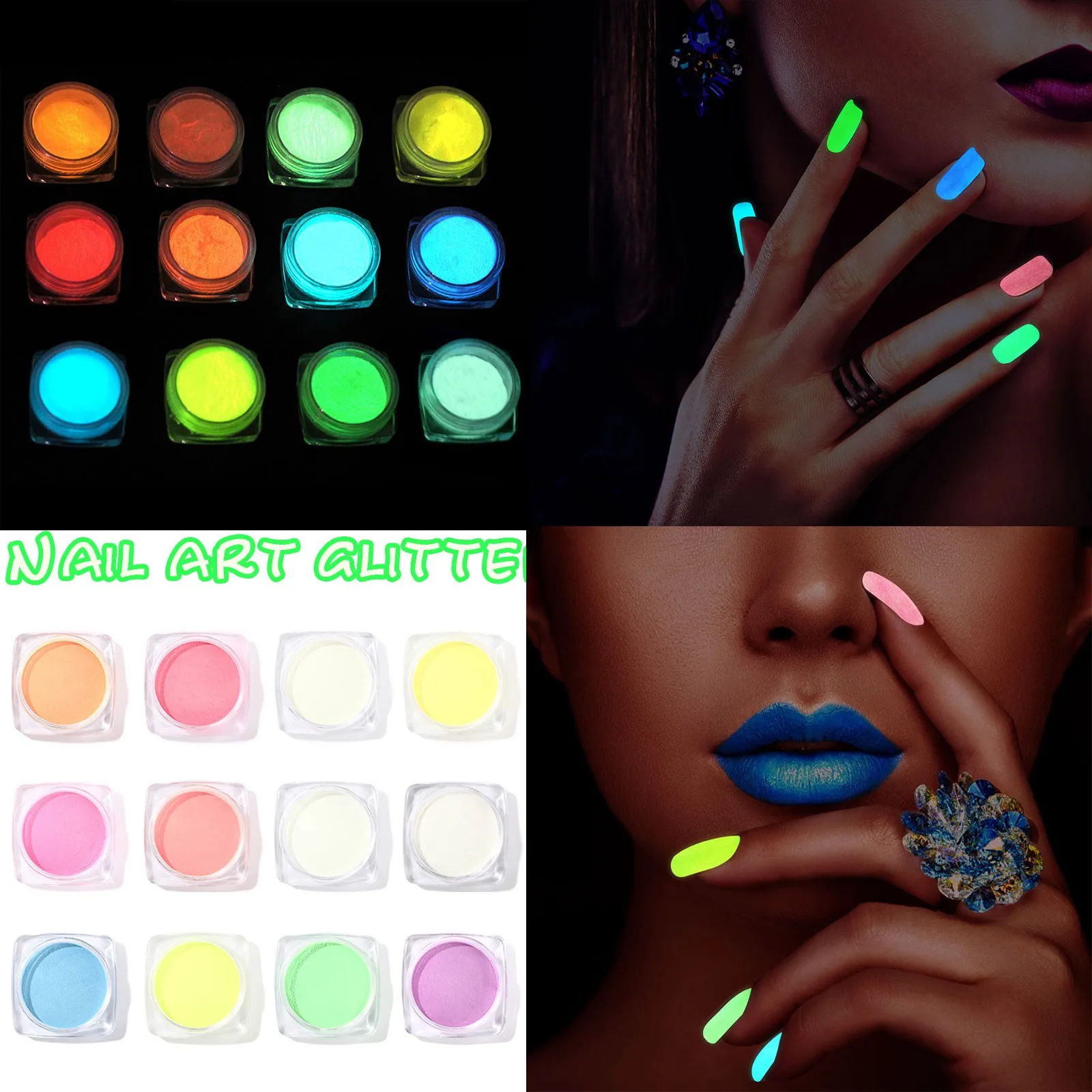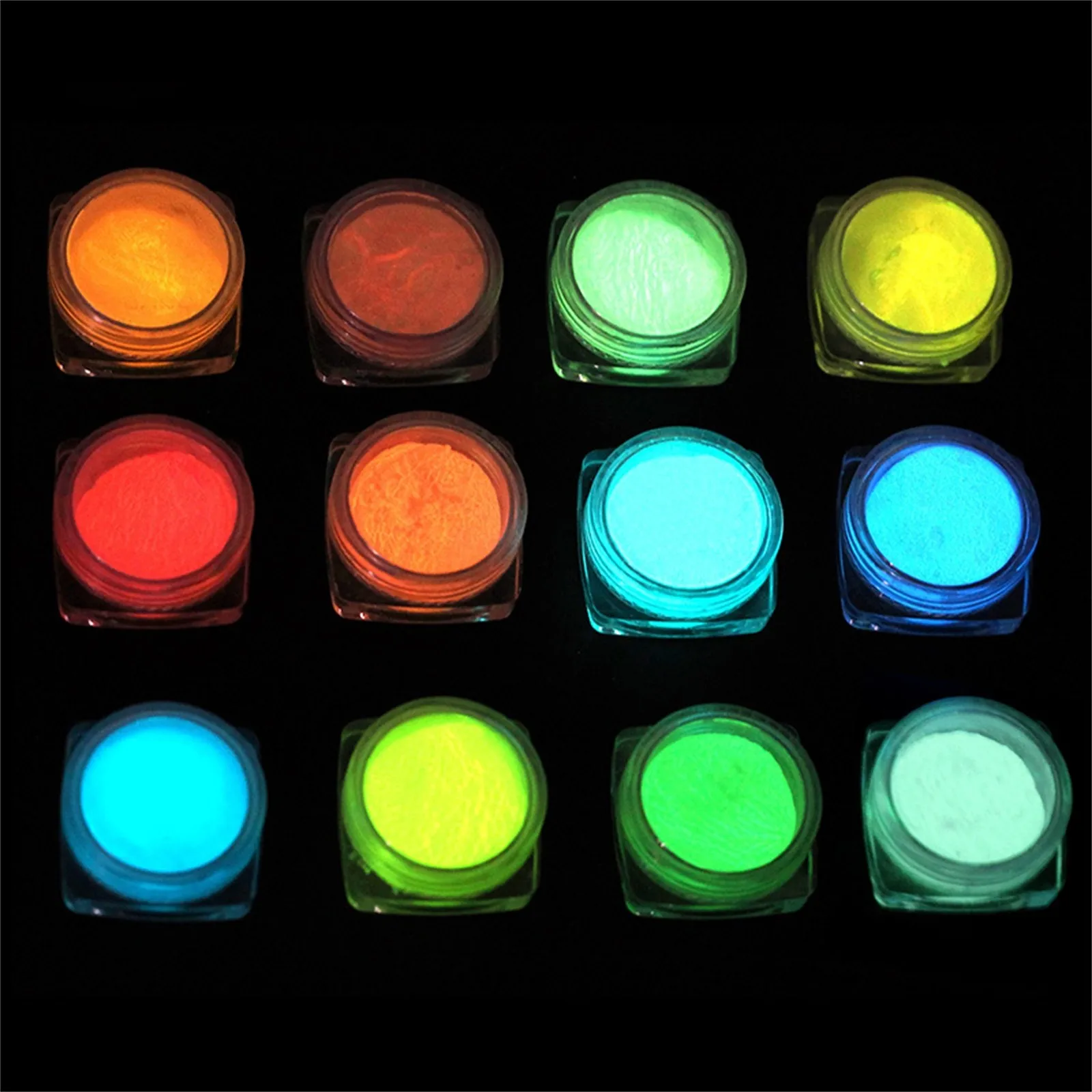 12 цветов Светящиеся ногти Пудра с кистью акриловые градиентные блестящие тени для век дизайн ногтей Блеск для лица и тела макияж ногтей фосфорный