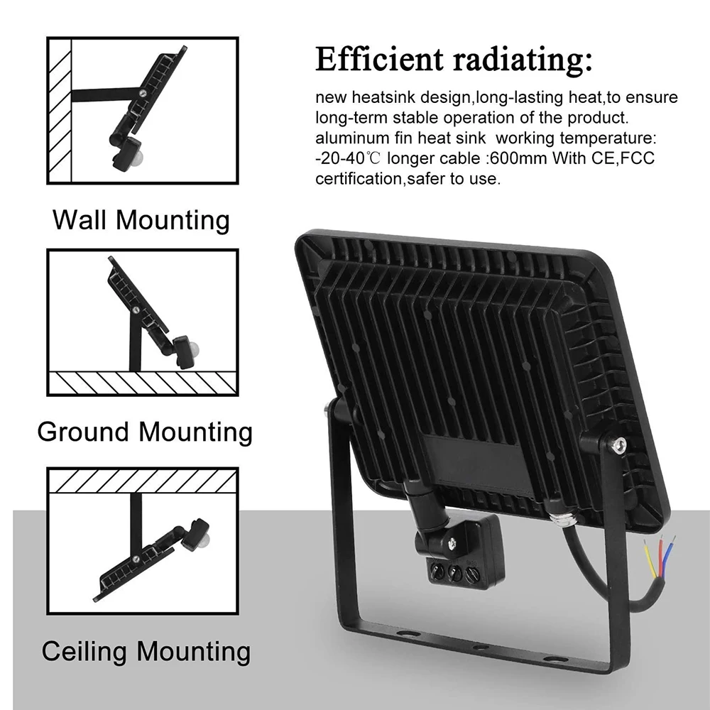 {Ультра-яркий прожектор} прожектор Встроенный высоко отражающий щиток поверхности и закаленного стекла. ◙ {Смарт Motion Сенсор} светодиодные потолочные светильник PIR детектор движения можно использовать для того, чтобы чувствовать движение людей, этот светильник будет автоматически включается в ночное время, когда motion обнаружен. Он может настроить настройки, регулировать время освещения, расстояние обнаружения и чувствительность датчика. ◙ {Гибкая установка} светодиодные прожекторы поставляются с регулируемым металлическим кронштейном, они могут быть установлены в потолке, стенах, земле и других местах, регулируя различные углы. ◙ {Обеспечьте безопасность вашего дома} наши наружные светильники безопасны и стабильны в различных погодных условиях. ◙ {Энергосбережение} Используйте высококачественные светодиодный чипы, что означает мощную яркость, более высокую эффективность и длительный срок службы. ◙ {IP66 водонепроницаемый} этот прожектор IP66 подходит для внутренних и наружных помещений, таких как аудитории, конференц-залы, дворы, крыши, сады, парки и т. д. Короче говоря, он может обеспечить вам яркую и безопасную ночь, где бы вы ни находились. Результаты Йоханнесбургской {Тонкий и легкий дизайн} усовершенствованный легкий дизайн с тонким корпусом. Используется утолщенный ребристый дизайн на спине для большей площади рассеивания тепла. ◙ {Широкое применение} идеально подходит для использования в садах, квадратах, рекламных щитах, фабриках, доках, дворах, палубе, гараже, дверях, подъездной дорожке, патио, ферме и других местах, где требуется освещение. Результаты Йоханнесбургской {No Harm} этот светильник безопасности не наносит никакого вреда или дискомфорта вашим глазам, дает вам очень удобный опыт. ◙ {Отличное послепродажное обслуживание} продукт прошел сертификацию CE и ROHS. Результаты Йоханнесбургской Экологически чистый и энергосберегающий.