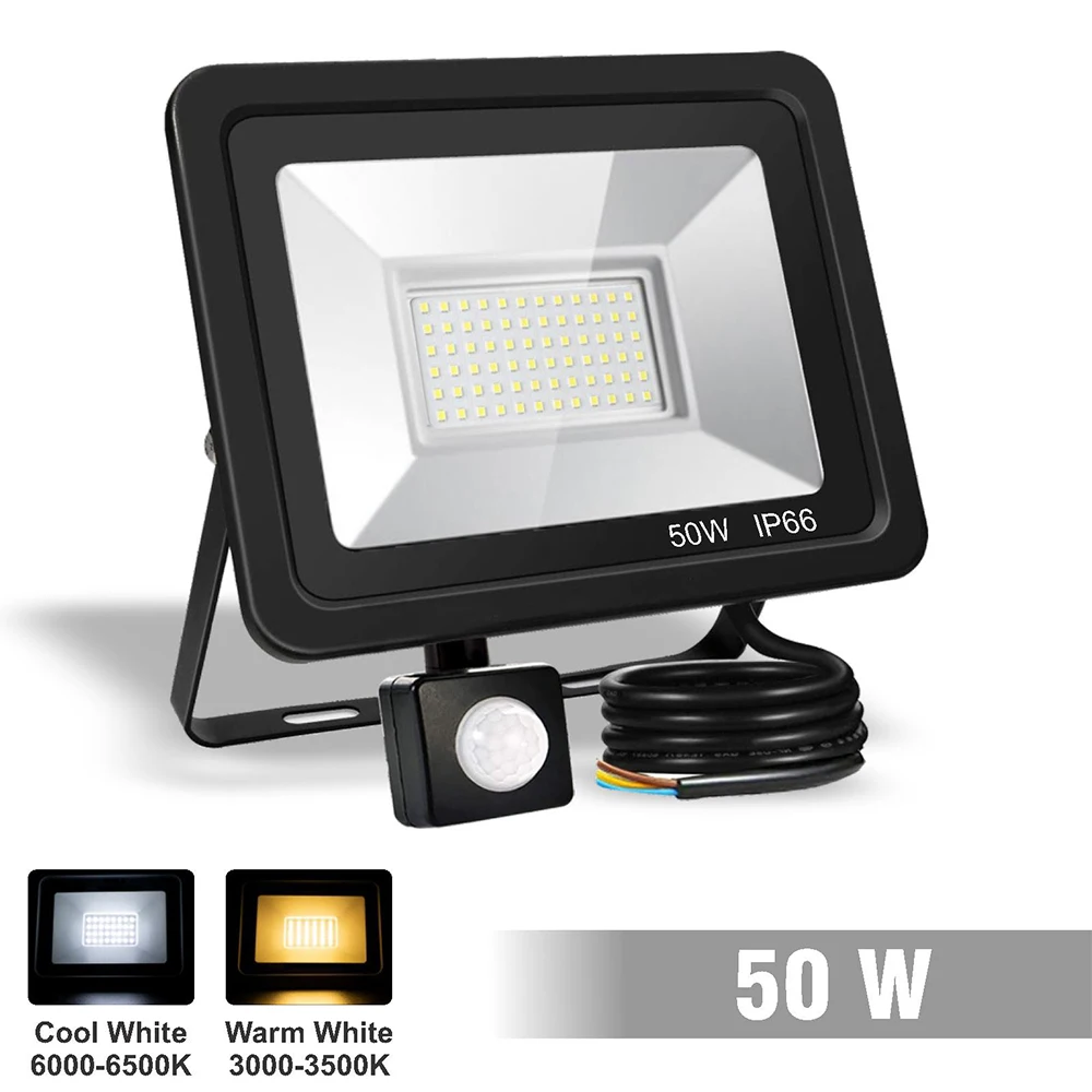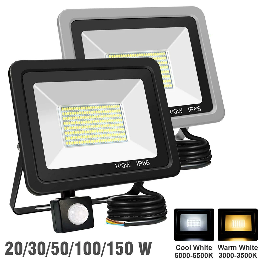 30/50/100/200 Вт Светодиодный прожектор 220 В движения PIR Сенсор безопасности точечные светильники наружного Водонепроницаемый стены отражатель освещение садовый светильник