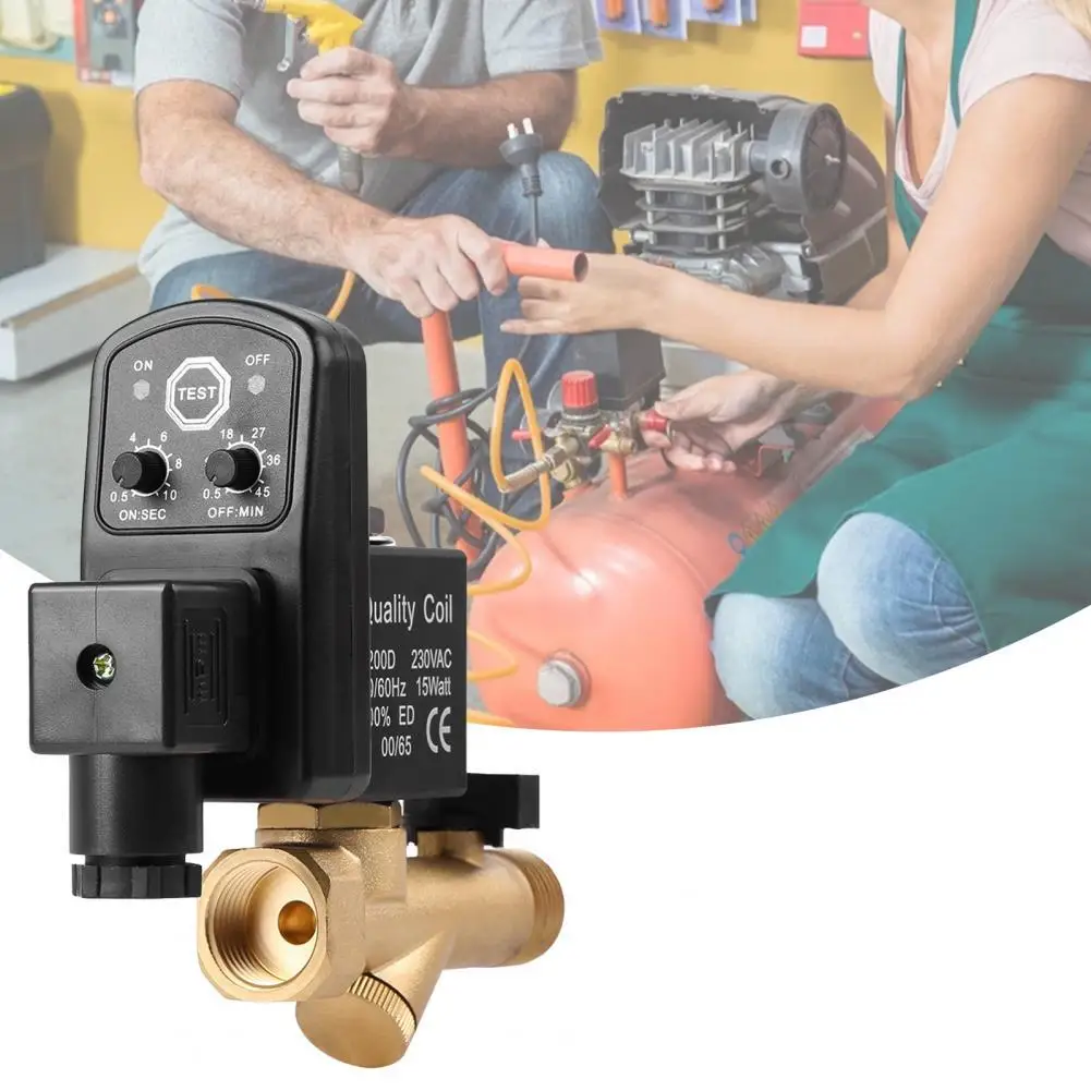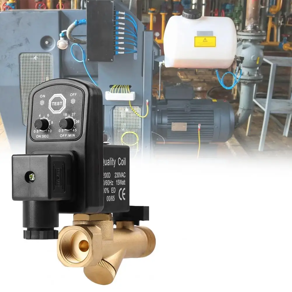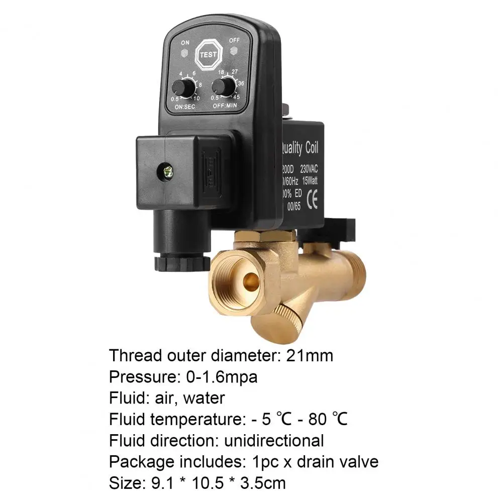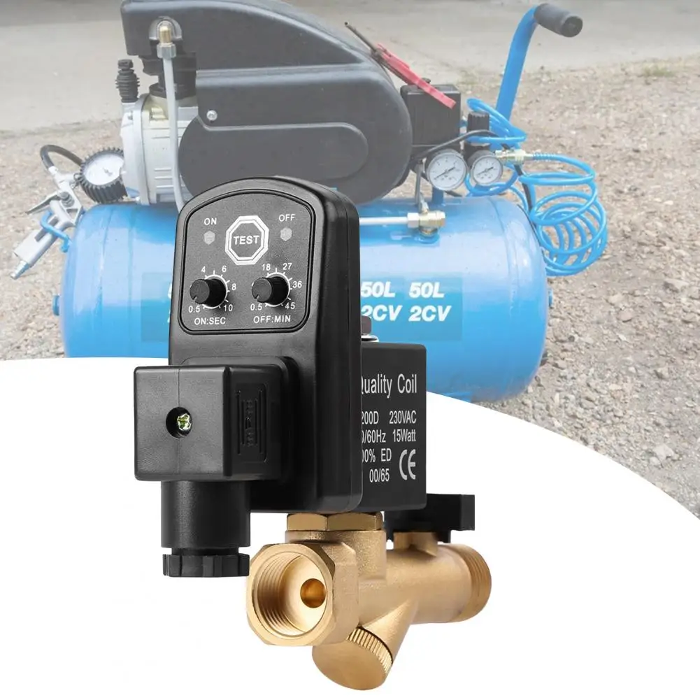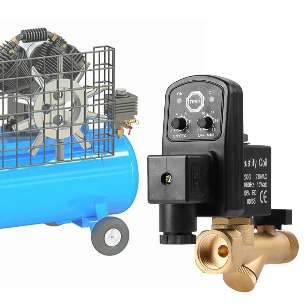 Надежные аксессуары Профессиональный автоматический сливной клапан для воздушного компрессораХарактеристики:Воздушные компрессоры могут поддерживать лучшие условия эксплуатации через этот высококачественный и надежный электронный сливной клапан.Этот сливной клапан может регулярно разрядить конденсат в соответствии с потребностями воздушного компрессора через его функцию синхронизации. И он будет подходить для большинства воздушных компрессоров из-за высокой адаптируемости.Изготовлен из латунного материала, он очень прочный в использовании.Длина изделия составляет 9,1 см, Ширина 10,5 см Высота 3,5 см.Подходит для воздушного компрессора, воздушного бака, газового бака и так далее.Наименование товара: сливной клапанМатериал: латуньЖидкость: воздух, вода