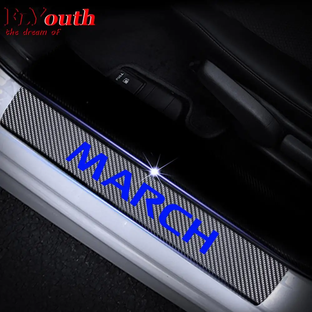 Накладка на порог двери автомобиля для Nissan March, светоотражающая 4D Наклейка из углеродного волокна, автомобильные аксессуары для порога Педали 4 шт.компл.