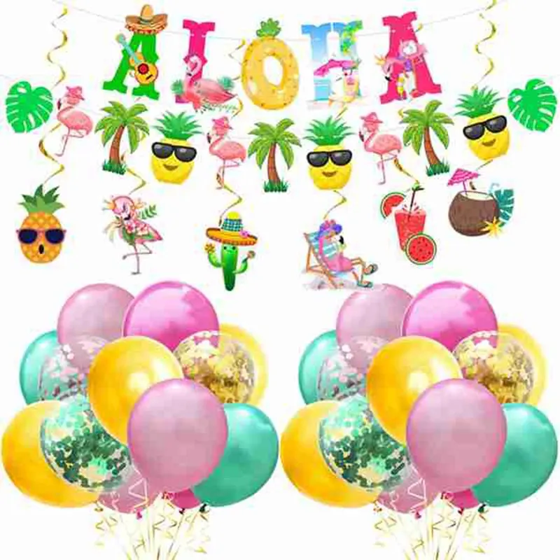 Гавайский декор для вечеринки, искусственное дерево, гирлянда Гавайская Алоха, луу, летняя тропическая гирлянда Фламинго вечерние ринки, свадьбы, вечеринки