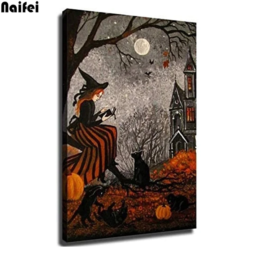 5D DIY алмазная живопись Хэллоуин Ведьма черный Кот винтажная полная Алмазная вышивка крестиком Мозаика Стразы подарок,