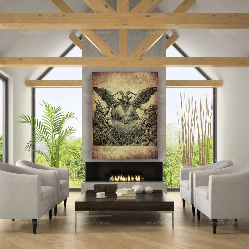 Оккультный постер Baphomet с принтом, оккультный постер, сатанический декор, сатаническая иллюстрация, готическое украшение, искусство ведра