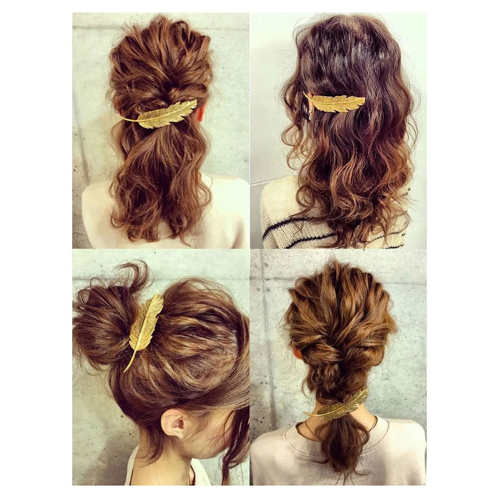 Металлические заколки для волос, Винтажные заколки для волос в форме листьев из перьев, заколки для волос, золотые, серебряные аксессуары для волос, аксессуары для укладки