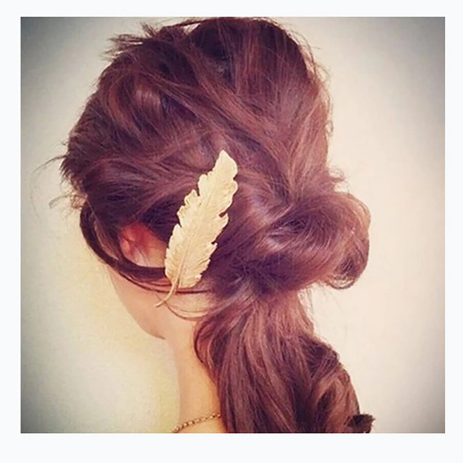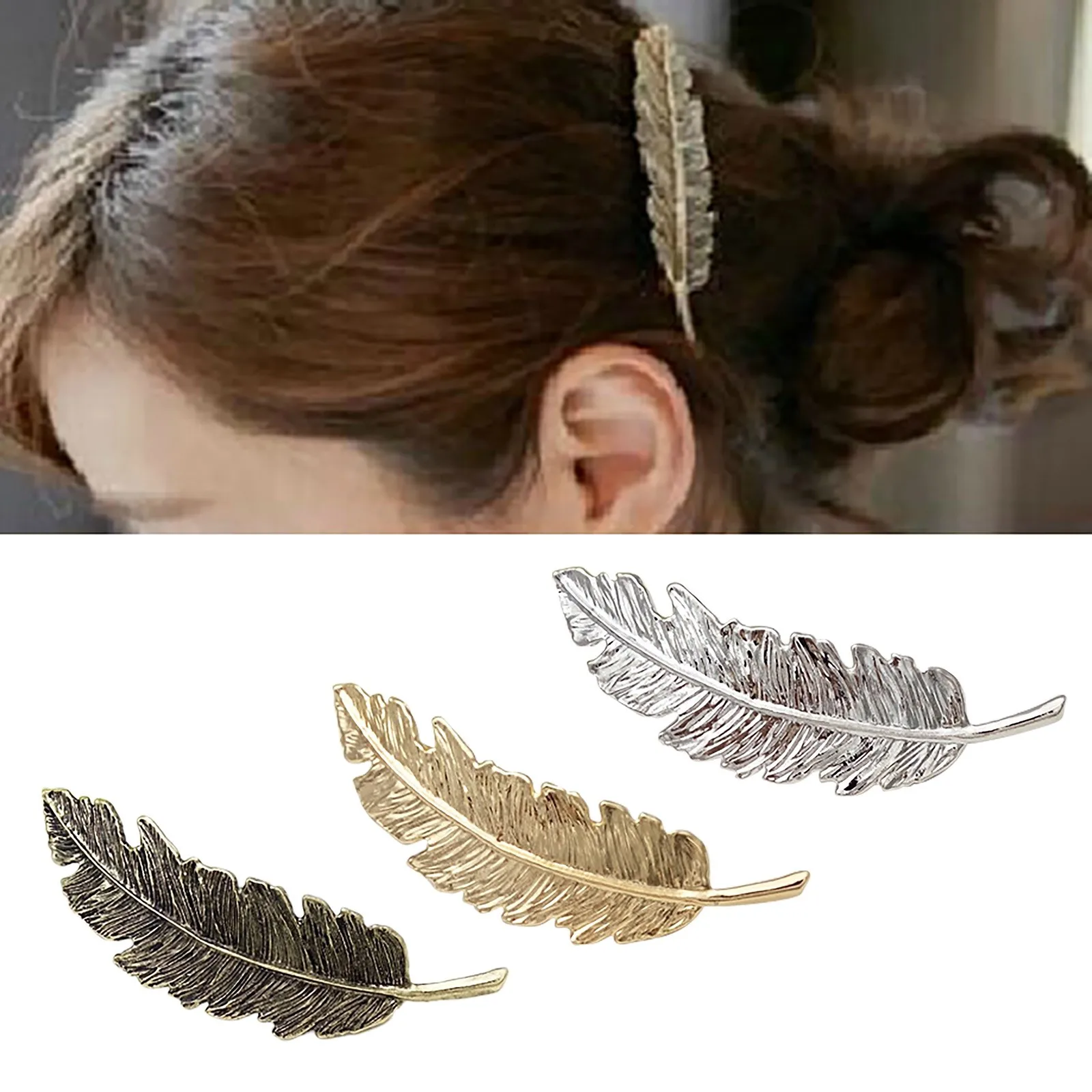Металлические зажимы для волос в форме листьев перьев, Винтажные заколки для волос в форме листьев, аксессуары для волос