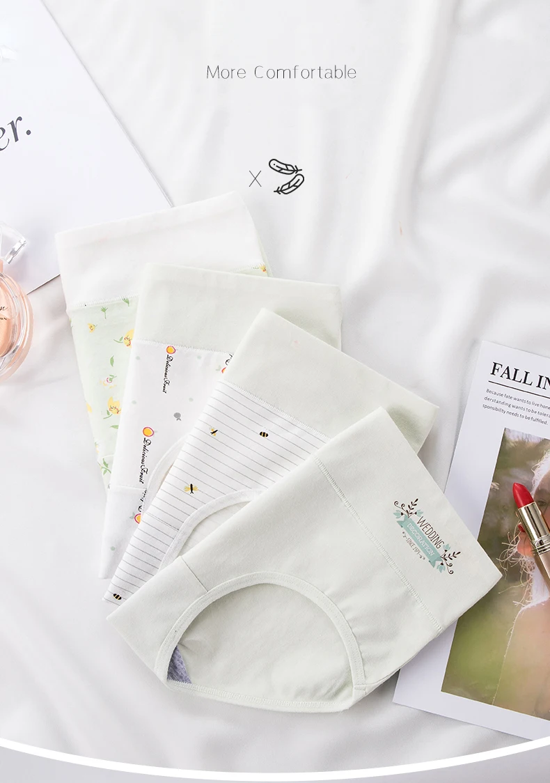 Женские трусики с высокой талией, 4 шт., хлопковые трусы для девуше...