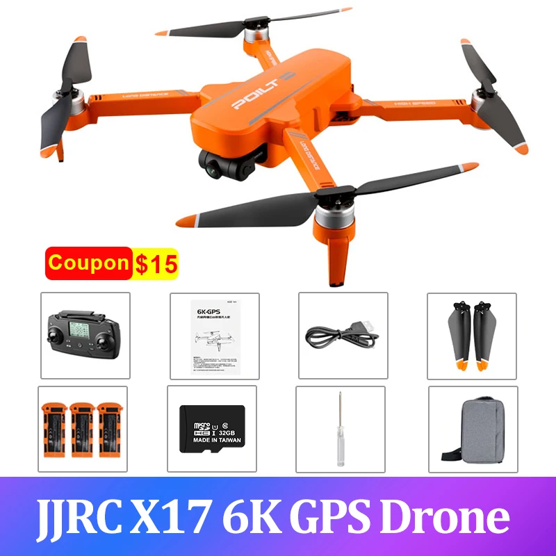 Квадрокоптер JJRC X17 с GPS, HD-камерой 6K, 2-осевым джойстиком, бесщеточным фотоаппаратом, Радиоуправляемый вертолет, 1 км, 30 мин полета, двойная камера
