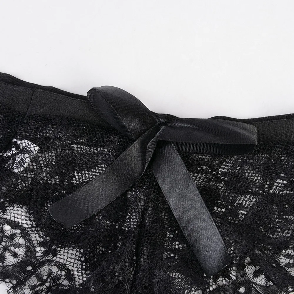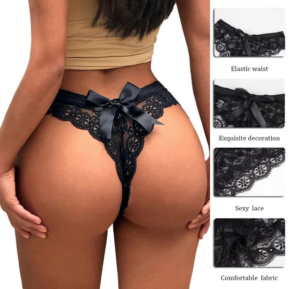 Женские сексуальные ажурные трусики-стринги с бантом и полностью кр...