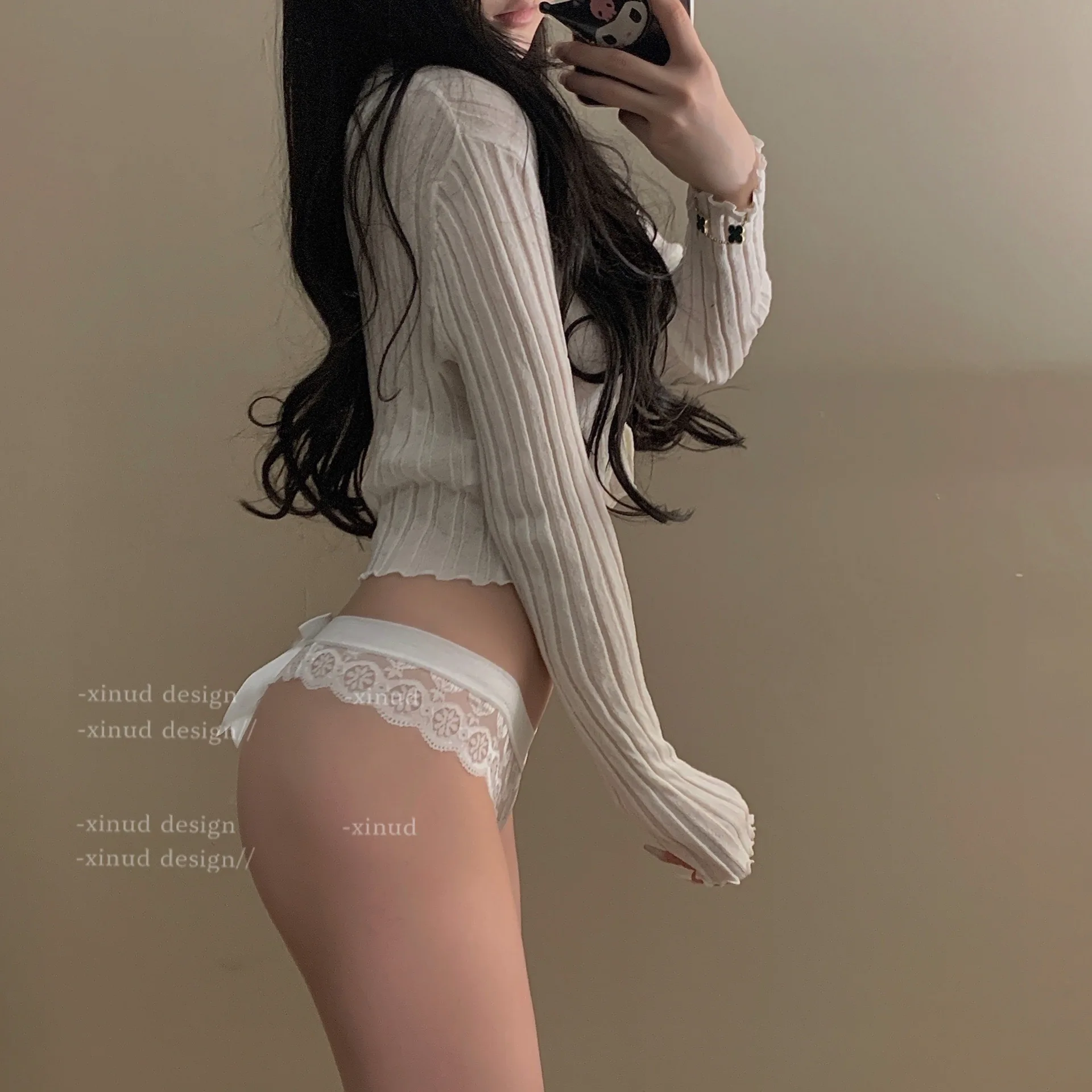 Трусики-стринги женские кружевные прозрачные, в японском стиле