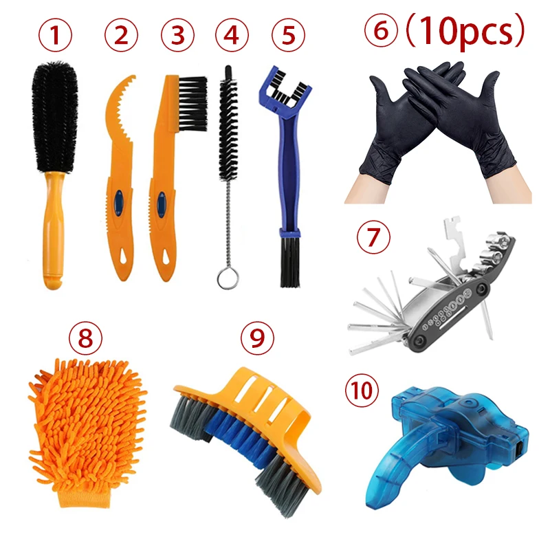 8 шт., чистящие кисти инструменты для велосипеда, включая Профессиональный скруббер для велосипедной цепи + щетка для очистки цепи + скруббер для шин + потускненная щетка для деталей + щетка для колес + скребок для звездочек + щетка для очистки велосипеда. Эти инструменты очень хорошо очищают ваш велосипед. Не нужно покупать больше чистящих инструментов. Велосипед-наш лучший друг. После долгого путешествия, велосипед покрыт осадком, мы должны помочь ему очистить и отдохнуть в это время. После очистки, начните путешествие снова. Использование: для всех видов велосипедов: горный велосипед, дорожный велосипед, городской велосипед, гибридный велосипед, BMX велосипед и складной велосипед