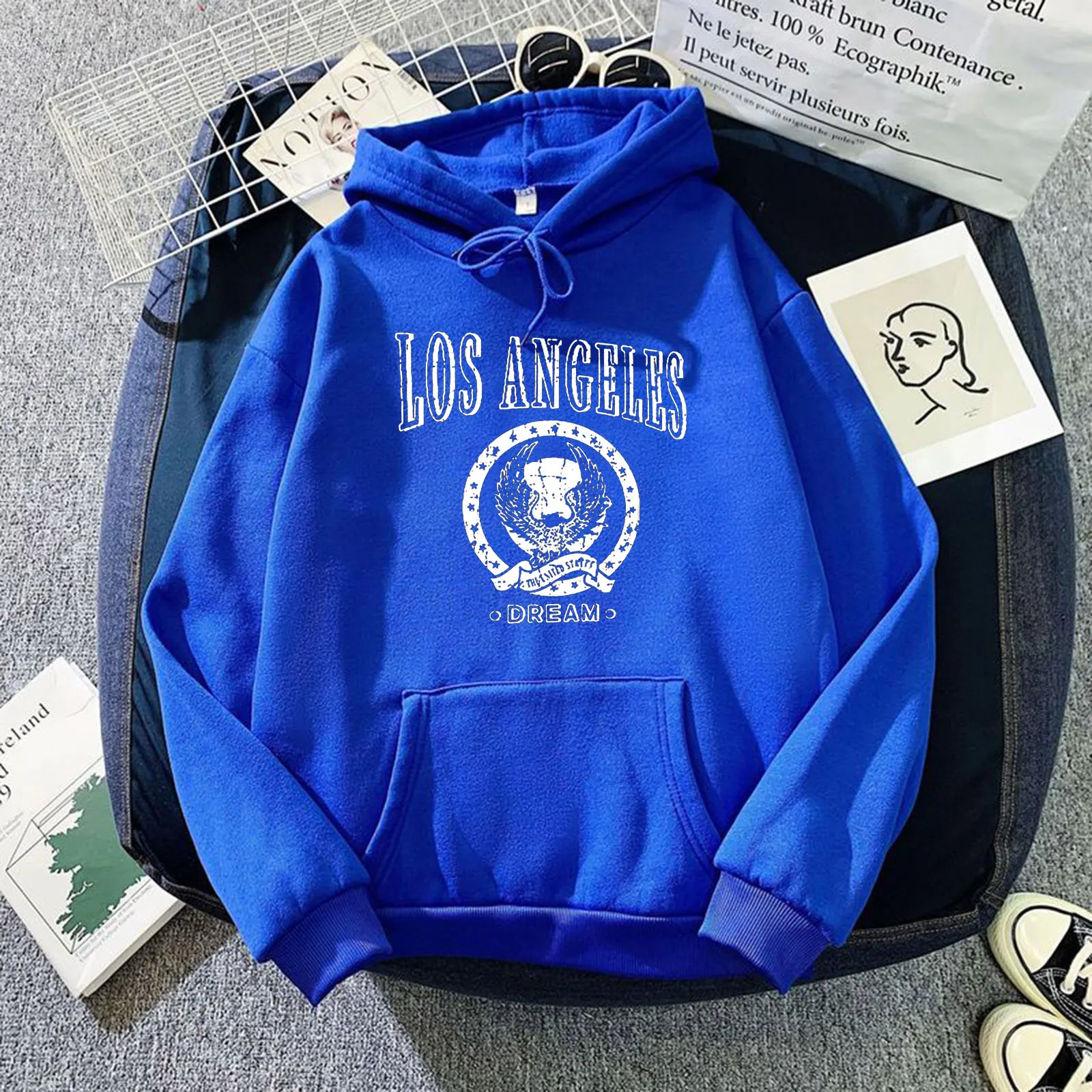 Корейские японские модные толстовки свитшоты женские пуловеры с принтом мечты Лос-Анджелеса с длинными рукавами и карманами на шнурке Moletom
