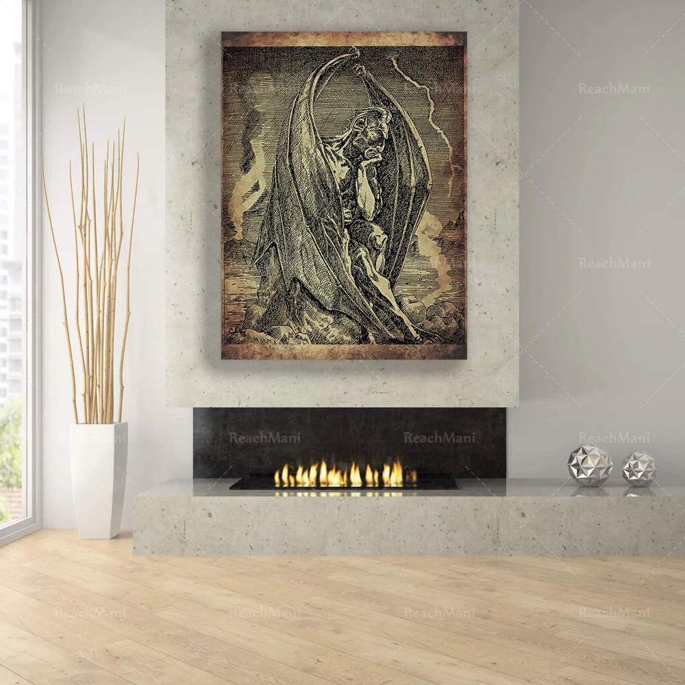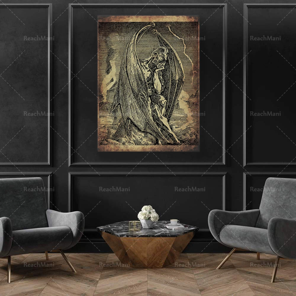 Постер с изображением павшего ангела Люцифера, оккультный постер, сатанический декор, сатаническая иллюстрация, готическое украшение, эзотерический домашний декор