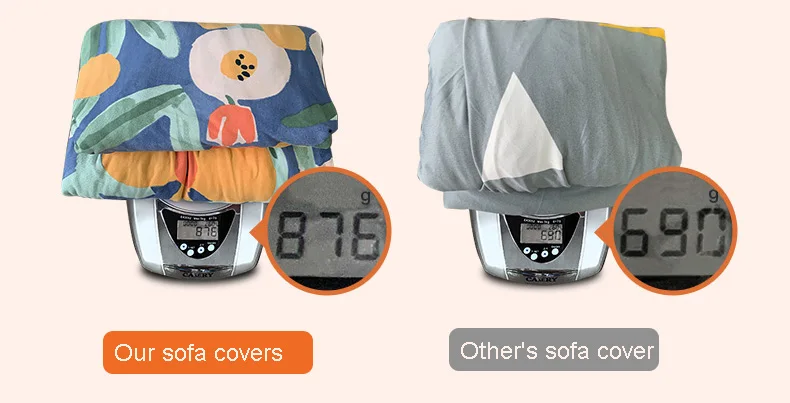 По сравнению с продуктами того же размера в других магазинах, наши чехлы на диван на 186 г тяжелее, чем другие Чехлы на диван, что означает, что ткань толще и прочнее.
