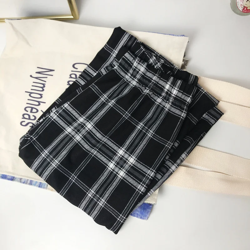 Женские клетчатые брюки, летние корейские брюки в клетку, штаны оверсайз, широкие брюки, уличная одежда, повседневные ретро брюки, универсальные брюки