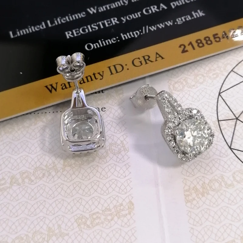Драгоценные камни для сережек: Муассанит 1CT 6,5 мм (прошел проверку сверла + сертификат)