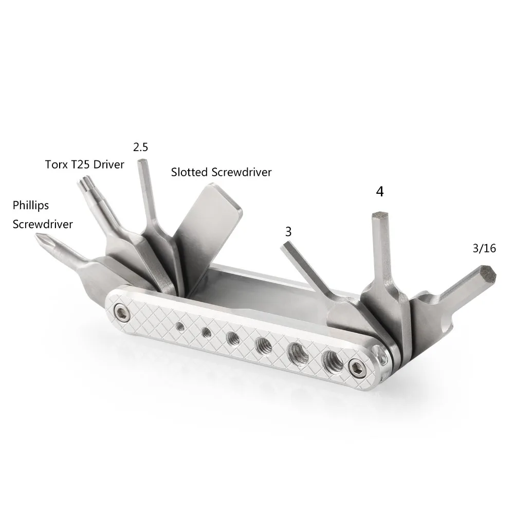 1,7 функциональный инструменты включает в себя: 4 гаечные ключи, дюймовый стандарт 2,5, 3, 4, 3/16, 1 крестообразная отвертка, 1 крестообразная отвертка и 1 Torx T25 драйвер;