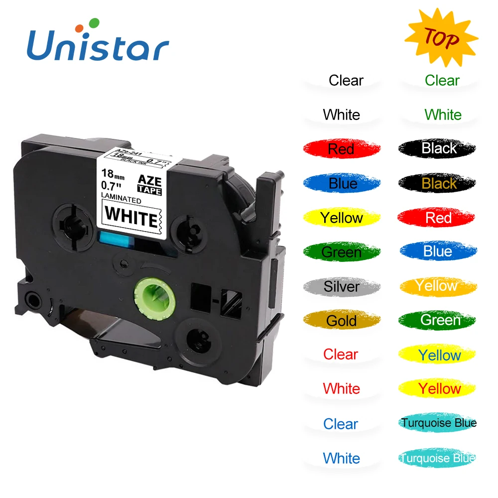 Устройство для изготовления этикеток Unistar TZe-241, 18 мм, совместимо с Brother, лента для этикеток PT300, TZe-141, TZe-441, TZe-541, TZe-641, TZe-242, TZe-243