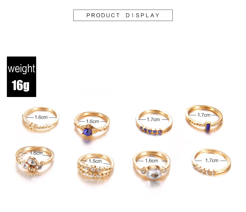 Набор Колец Стразы в стиле ретро, простые кольца в стиле хип-хоп с ...