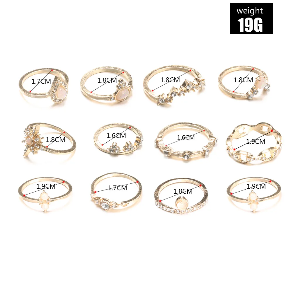 Набор Колец Modyle 12 шт.компл. для женщин, винтажные кольца на фал...