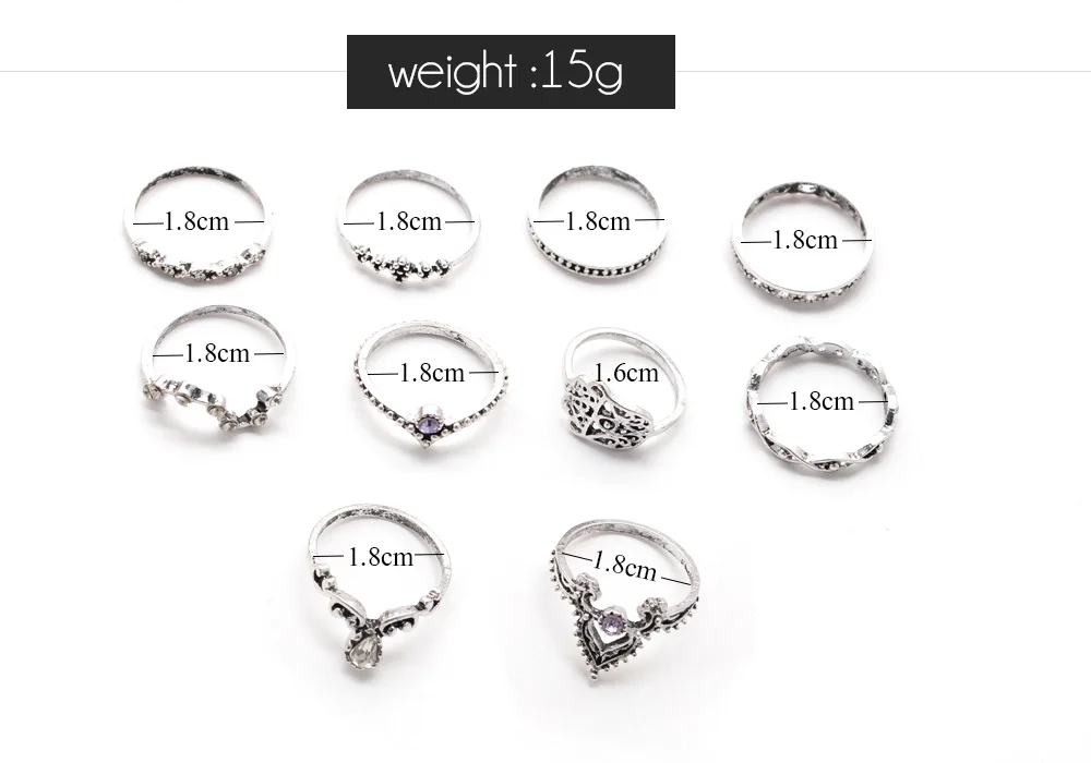 Женский набор колец на фаланги пальцев, богемный набор колец с крис...