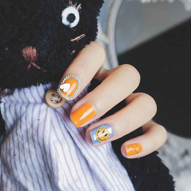 1 Высококачественная ультратонкая наклейка для ногтей с улыбающимся лицом, цветные цветы, трехмерная рельефная 5D фотография
