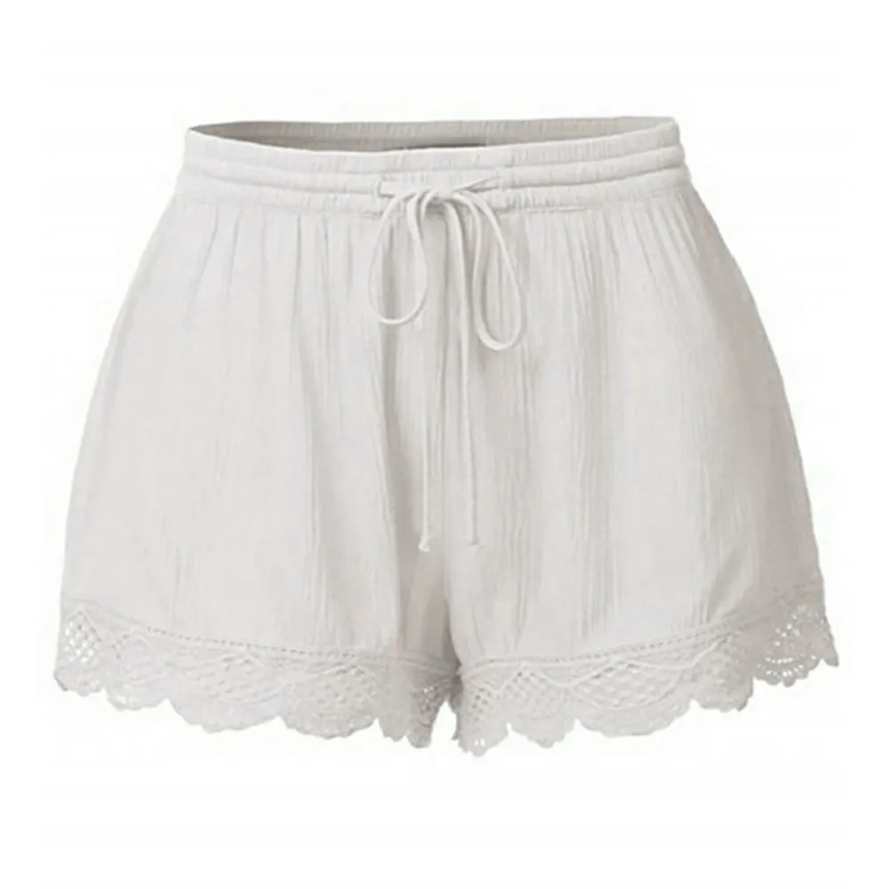 Женские кружевные шорты 25 #, однотонные повседневные шорты со шнур...