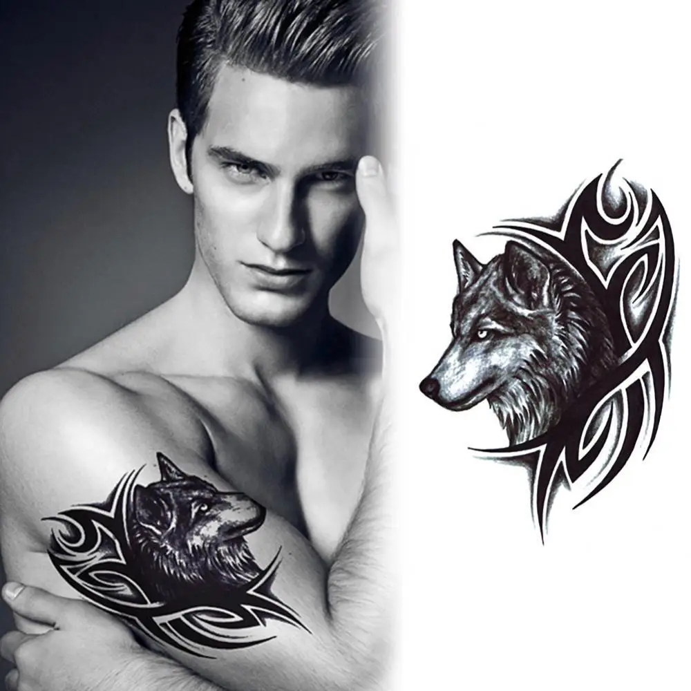 Модная водостойкая наклейка-Татуировка Wolf King, временная наклейка для боди-арта
