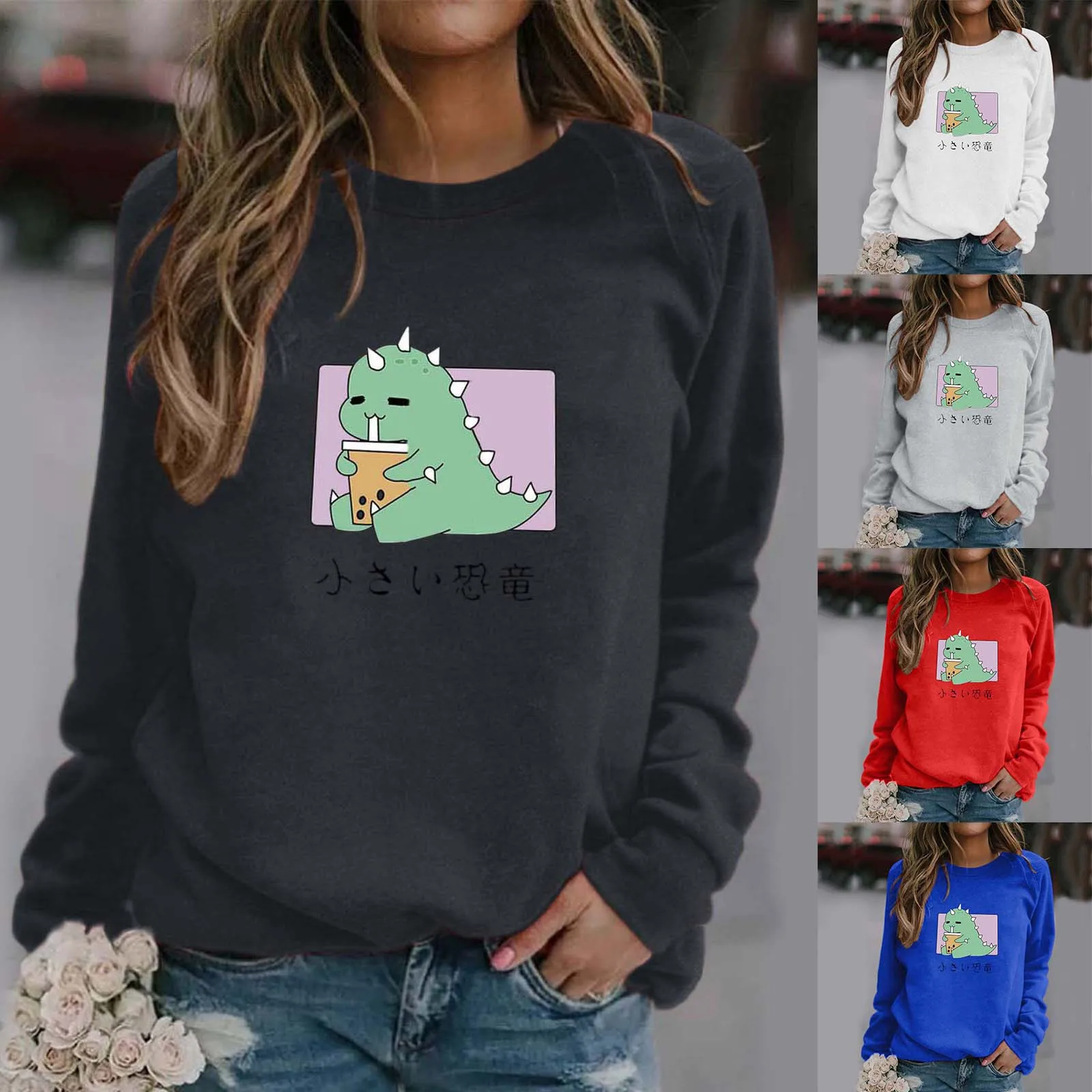 Осенние мужские и мужские толстовки с принтом маленького динозавра, милые пуловеры с капюшоном и круглым вырезом в Корейском стиле Харадзюку для пар