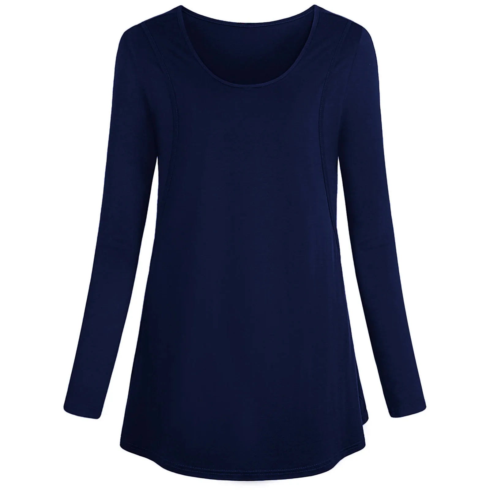 #58 Мода 2021 беременность футболка женская с круглым вырезом однотонная с длинными рукавами одежда для кормления грудью Camiseta Lactancia Mujer