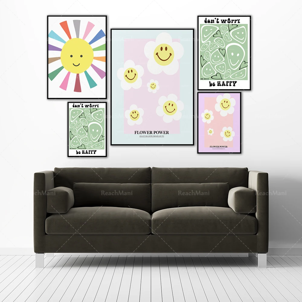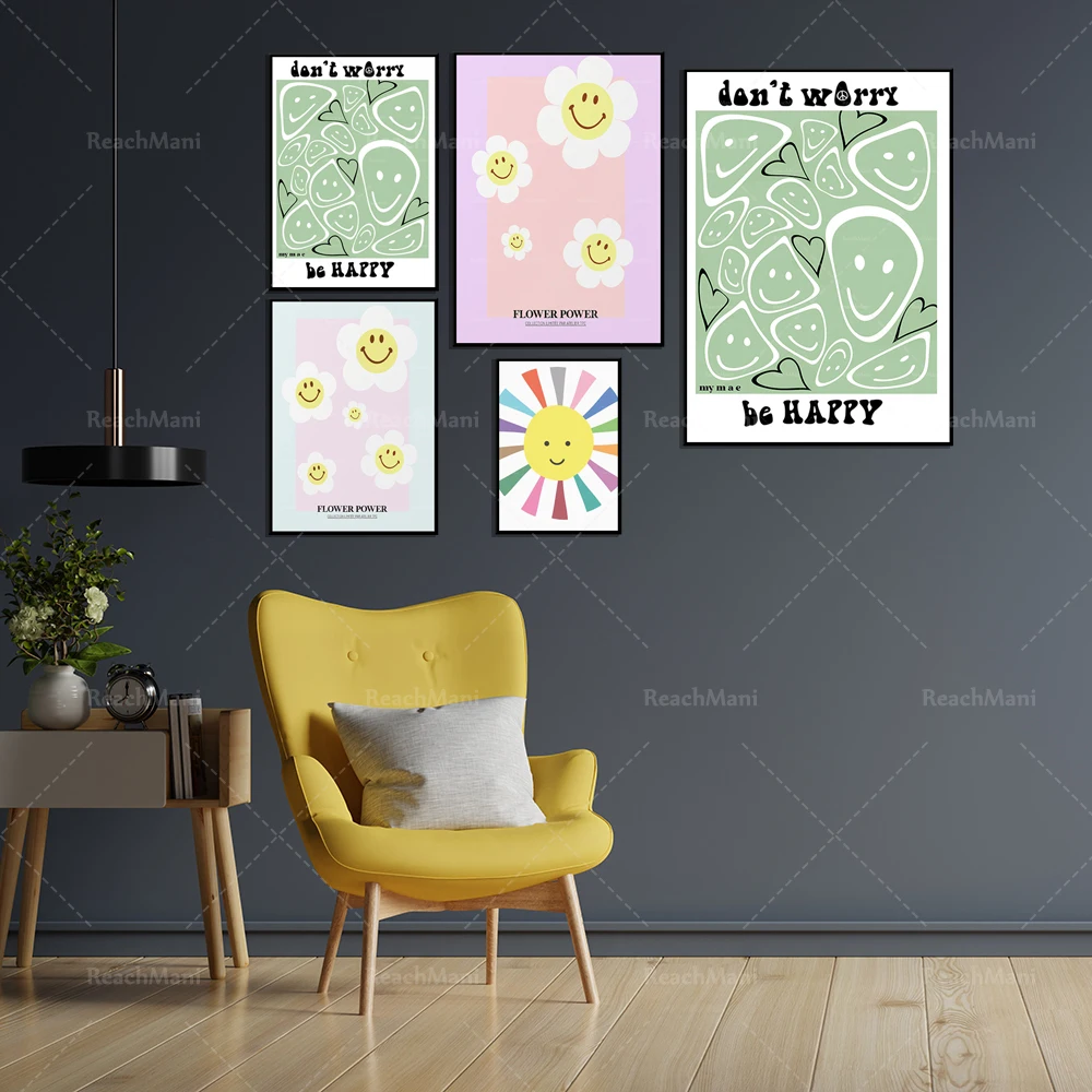 Цветок с возможностью печати в стиле хиппи 60-х годов счастливый цветок в стиле хиппи средневековый современный Пастельный детский художественный принт в стиле ретро