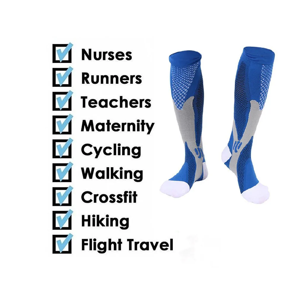 Независимо от того, являетесь ли вы спортсменом, который хочет преуспеть в игре, который сидит долгое время во время путешествий или на работе, или кто-то, кто борется с болью из-за хронического состояния, поддержка правильного кровотока на ноги имеет первостепенное значение. Наши компрессионные носки разработаны с новейшей технологией сжатия от свода до икры, Предлагаем адресную поддержку голени и мышц, помогает сохранить поток крови, чтобы повысить атлетическую производительность и облегчить боль из-за ряда условий. Снижает риск травм Обеспечивает дополнительную компрессионную поддержку для стабилизации свода, лодыжки и мышц. Минимизирует колебания мышц и micro-tearing.Prevents спазмов и травм. Усиленная поддержка может предотвратить травмы из-за плохой силы мышц, особенно во второй половине марафона. Улучшает вашу производительность Для спортсменов на выносливость ключевым механизмом является «икроночный мышечный насос»-с каждым шагом или педальным ударом, сжимающий и разжимающий телячьи мышцы сдавливает кровь обратно к сердцу. Наши компрессионные носки обеспечивают дополнительное сжатие, которое усиливает это действие накачки, ускоряя поток очень необходимого кислорода для работы мышц. Ускоряет кровообращение к сердцу и избавляет от метаболических отходов от мышц. Помогает быстрее восстановиться Стимулирует кровоток и улучшает доставку кислорода в ваши мышцы. Уменьшает выработку молочной кислоты, мышечную болезненность и чувство тяжеловесности в ногах и ногах. Более быстрое восстановление от «задержки начала мышечной болезненности». Помогает предотвратить или снять отеки Помогает контролировать отек через улучшенную циркуляцию и ускоряет удаление клеточных отходов. Уменьшает отеки и усталость от длительного сидения или стоя. Идеально подходит для беременных женщин и тех, кто сидит или стоит в течение длительного периода во время путешествий или на работе. Помогает облегчить боль в подошвенном фасциите Разработан с компрессией, чтобы помочь в управлении болью и облегчении от подошвенного фасцита, пятки шпоры и боли в суставах. Помогает при стоянии и ходьбе. Сжатие связок уменьшит воспаление, ускоряя процесс заживления. Которые могут извлечь выгоду из компрессионных носков: 1. Беременная женщина 2. Спортсмены и активные люди занимаются спортом, бегом, пешим туризмом, велоспортом, футболом и т. д. 3. Частые путешественников или тех, кто летает на длинном самолете 4, рабочие места, которые требуют от вас быть на ногах много: медсестры, учителя, строительные работники, повара, линейные рабочие, ресторанный обслуживающий персонал и т. Д. 5. Рабочие места, которые требуют длительного сидения: офисные работники, водители и т. Д. 6. Любой, кто болеет варикозным расширением вен, отеком, подошвенным фасциитом и т. Д.
