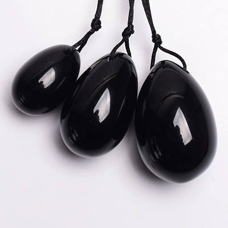 Натуральный черный обсидиан Yoni набор яиц для массажа, массажная п...