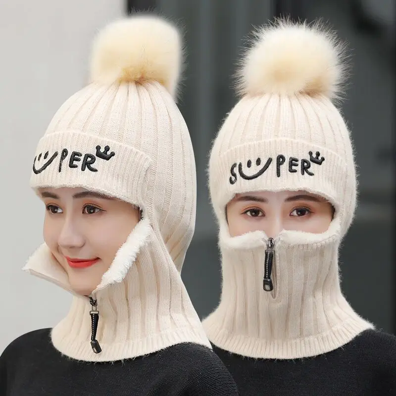 Зимняя вязаная шапка теплая плотная бархатная шапка женская шерстяная корейские волнистые дикие осенние и зимние наборы для езды головные уборы