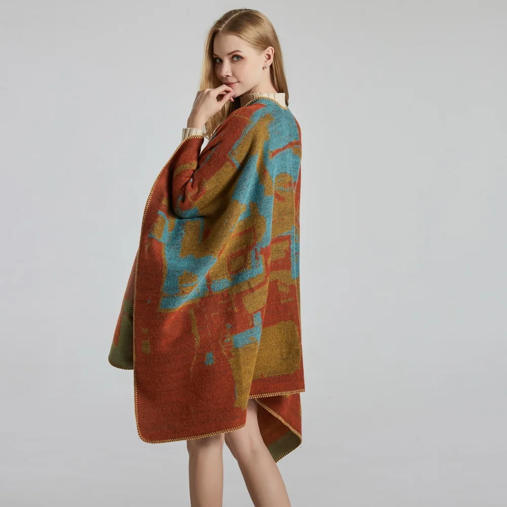 Пончо зимнее Ruanas Para Mujer Женская шаль женские накидки имитаци...