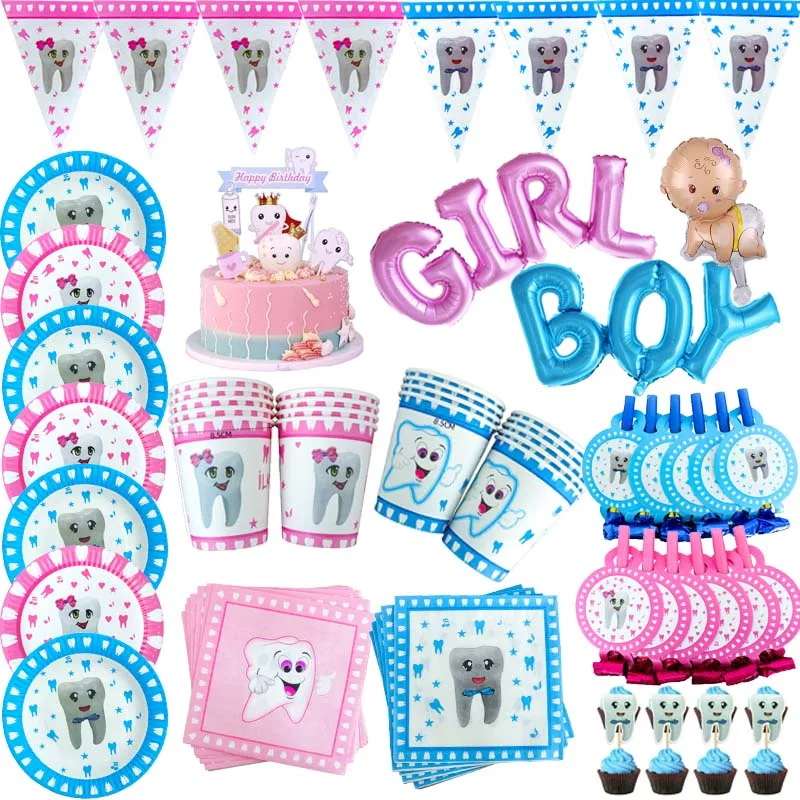 1 комплект, вечерние принадлежности для декора для мальчиков и девочек, одноразовая посуда, бумажные тарелки и стаканы, сделай сам, детский душ, день рождения, зубной шар
