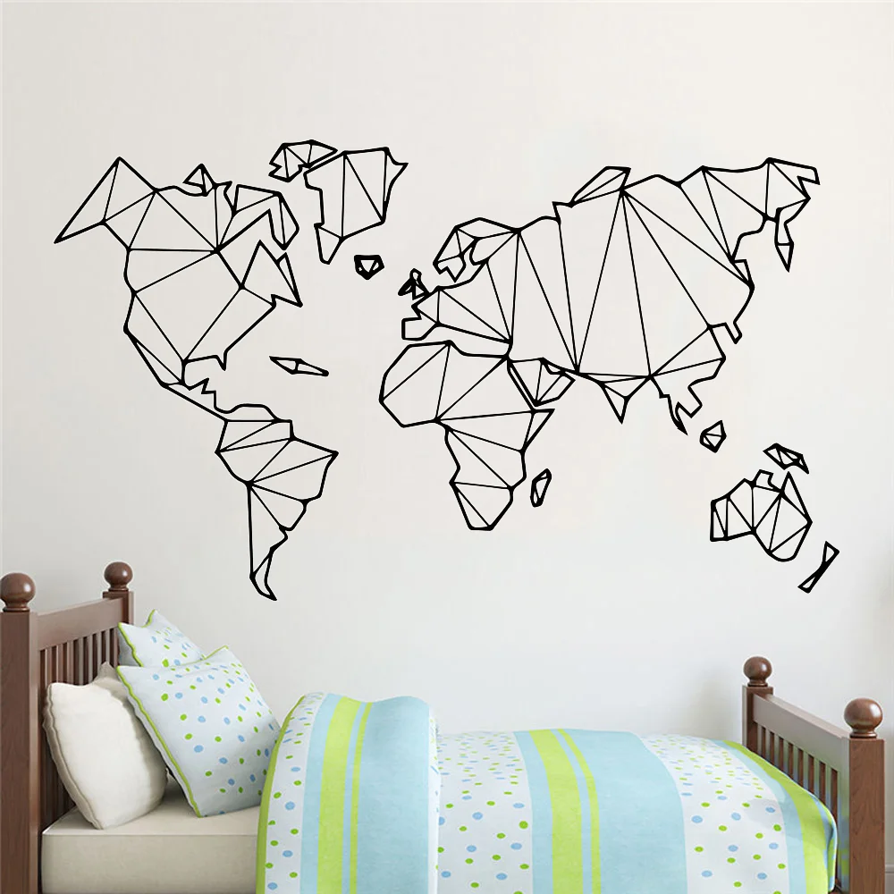 Виниловая наклейка на стену, с геометрической картой мира