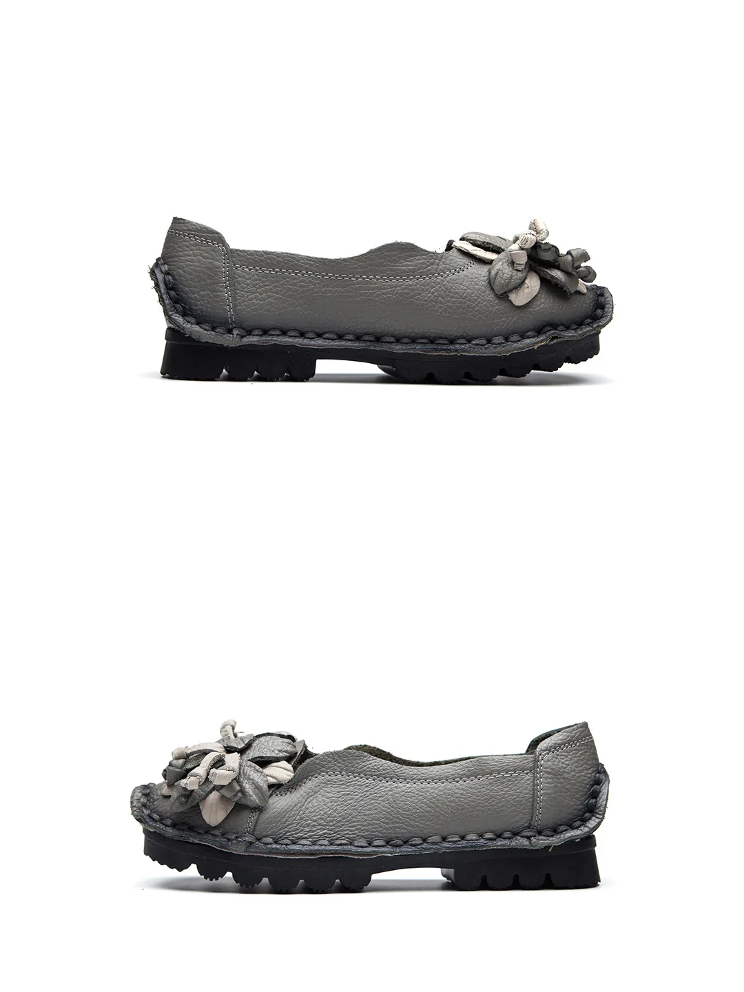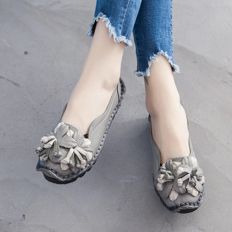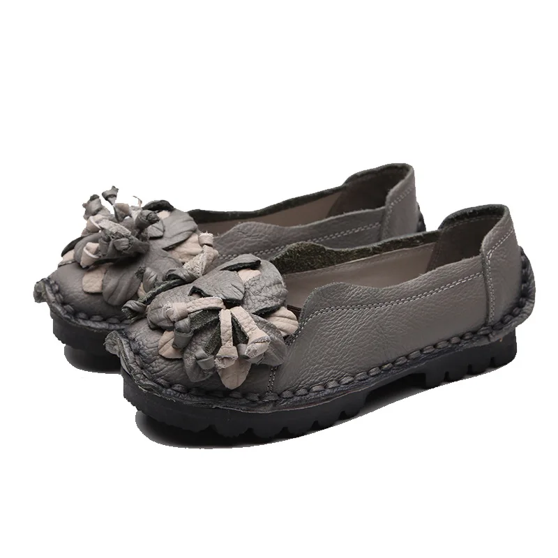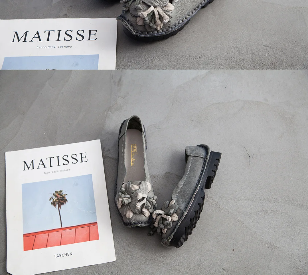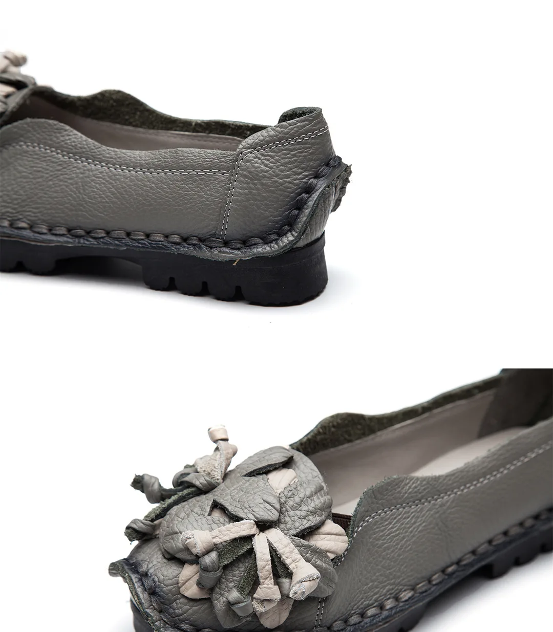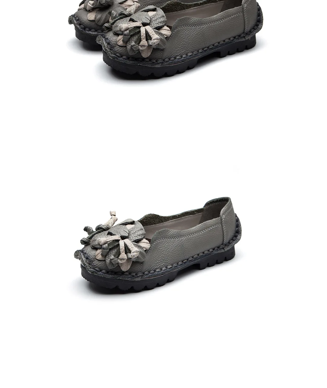Туфли женские ручной работы из натуральной кожи, балетки, плоская подошва, цветочные мягкие, повседневная обувь, мокасины