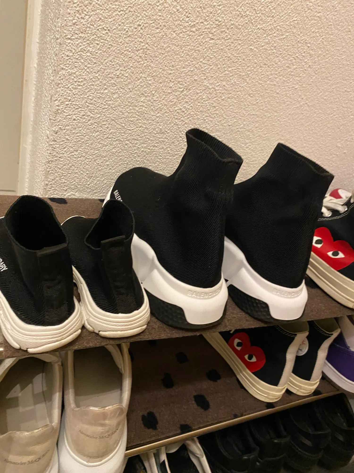Это заняло некоторое время, но оно пришло, и я очень счастлив. Это так же, как фотографии. Прекрасно. Прекрасно. Слегка Тяжелая резиновая подошва и эластичная ткань. Пахнет большим количеством растворителя, мне пришлось их проветривать, чтобы запах выходил таким легким. Размер, кажется, соответствует европейскому., но если вы покупаете на один размер больше, чем обычно, на всякий случай. Спасибо продавцу!