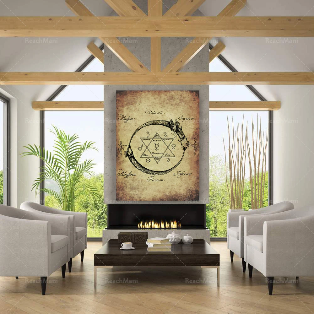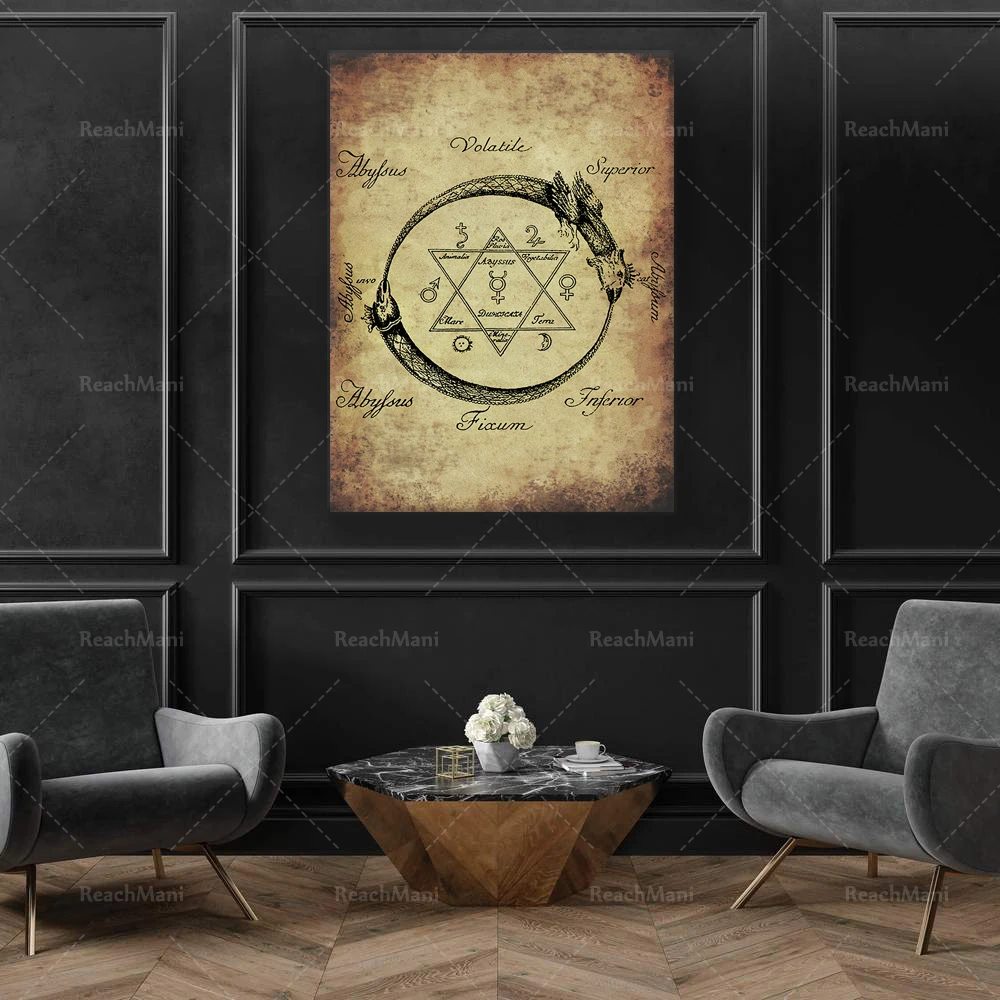 Ouroboros змея волк треугольник плакат, альхимия оккультная печать, герметичный декор, древняя Художественная печать, украшение Magick