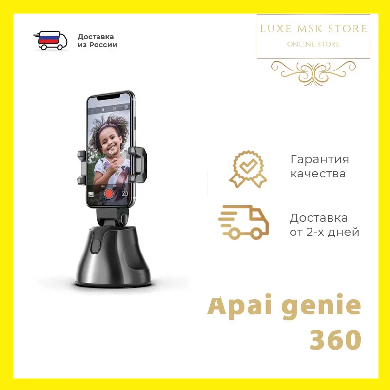 Умный штатив 360° Apai Genie Robot-Cameraman с датчиком движения Умный держатель для телефона Apai Genie автоматически отслеживает лица и объекты в движении, когда вы снимаете видео или ведете прямую трансляцию. Умный гаджет с поворотом на 360° поможет создать профессиональный видео-контент не обращаясь за помощью оператора. Это идеальный помощник для создания своих влогов, стримов и другого видео/фото контента. Умный держатель для телефона сможет распознать лицо, вращается на 360 градусов и автоматически распознает как человека, так и питомца. Когда вы совершаете движение, умный держатель для съемки будет за вашим движением, установит позицию при остановке и сделает снимки автоматически в фиксированное время 3 секунды. Меньше слов - больше дела! Посмотрите видео и Вы поймете, что Вам необходим умный держатель. Смарт держатель для телефона с легкостью сделает групповые фотографии, записи видео для Tik Tok, Instagram, Facebook Live, Vlogging, Youtube и т.д. Штатив без труда устанавливает смартфон в удобный режим: вертикальный или горизонтальный. Приложение смартфона: APAI GENIE помогает управлять штативом на расстоянии. Смарт-штатив работает через соединение Bluetooth. Есть поддержка iOS и Android, поэтому устройство подходит для большинства моделей телефонов. Умный штатив работает от батареек, поэтому он не подведет Вас там, где нет USB-порта. Штатив поворачивается на 360 градусов и наклоняется на 37 градусов