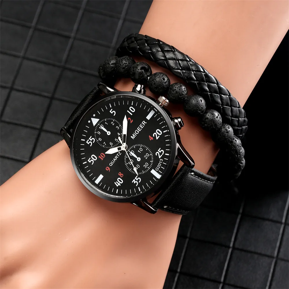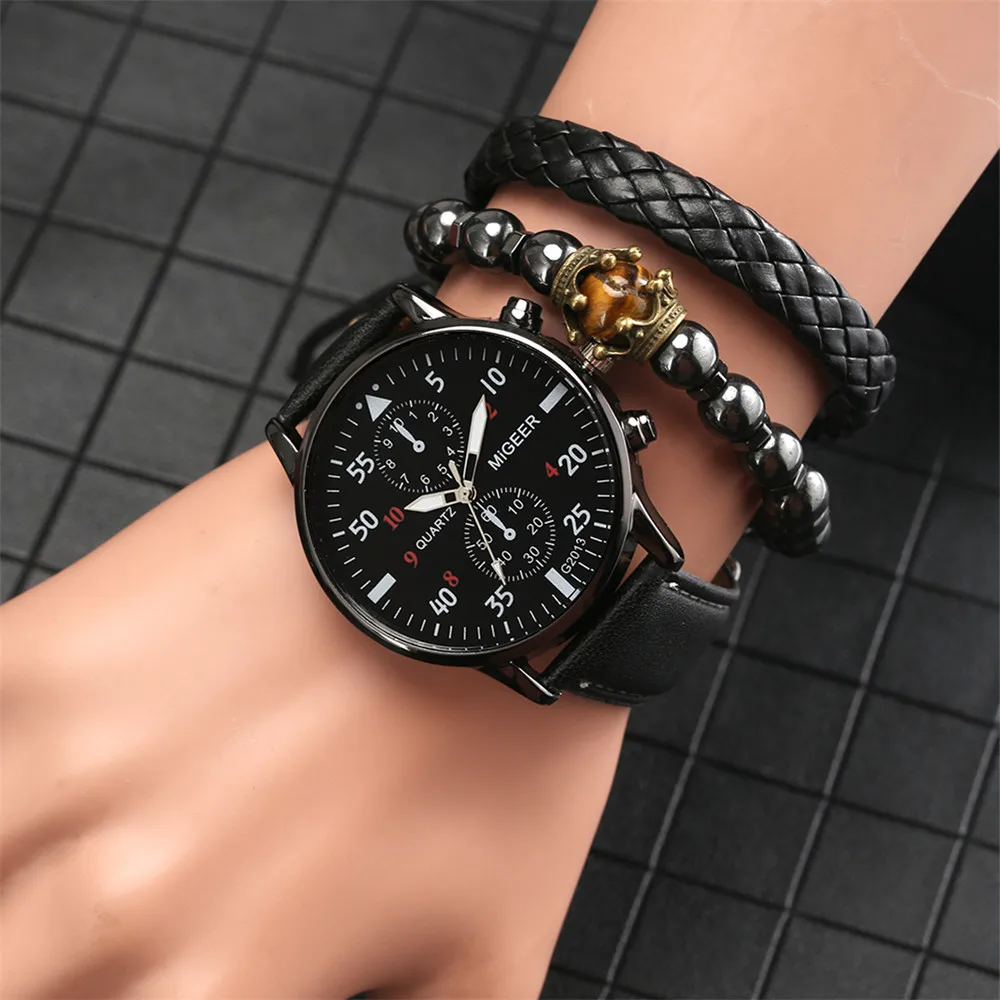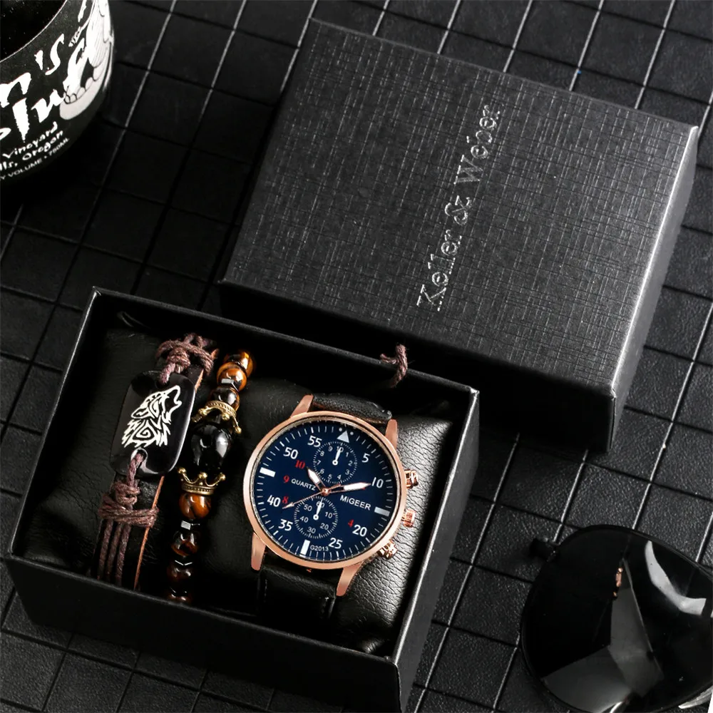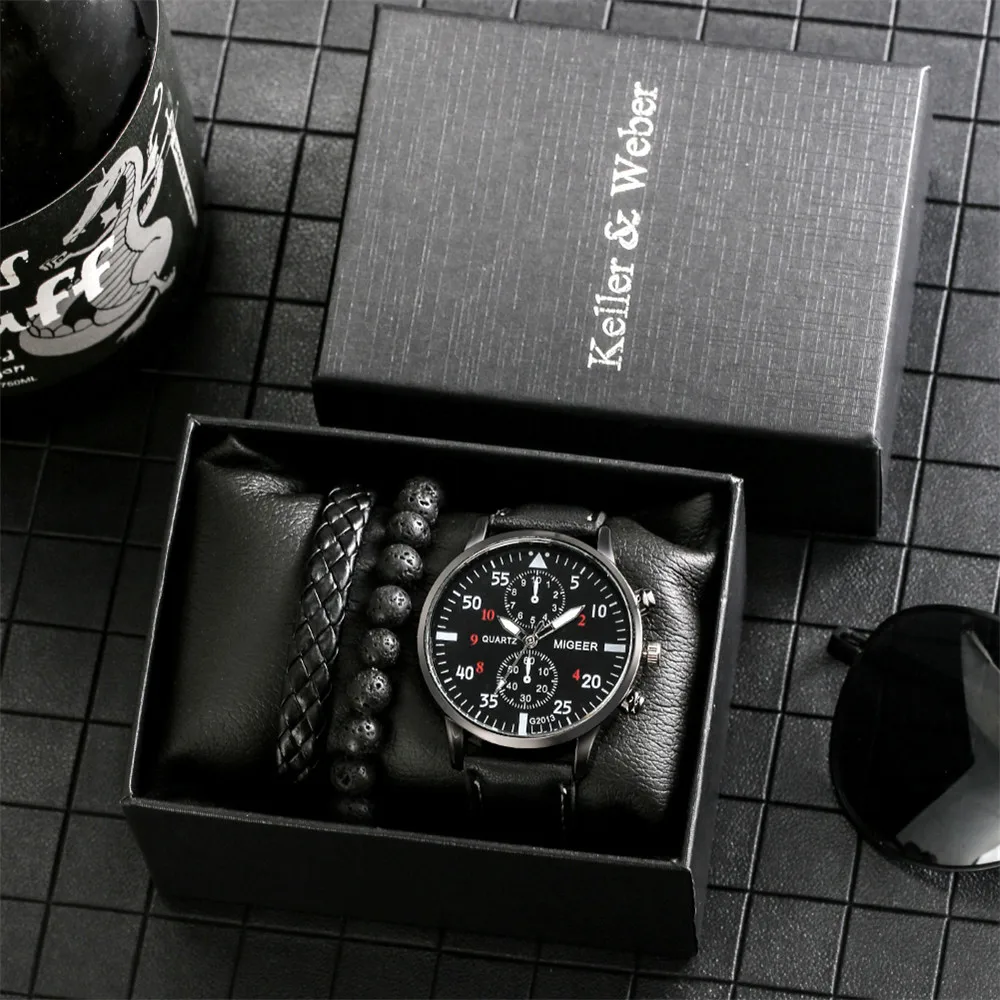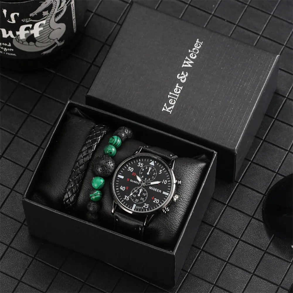 Часы Keller Weber в подарочной коробке, набор из 3 частей, кварцевые кожаные Наручные часы, модные браслеты, подарок на день рождения для сынамужадрузей