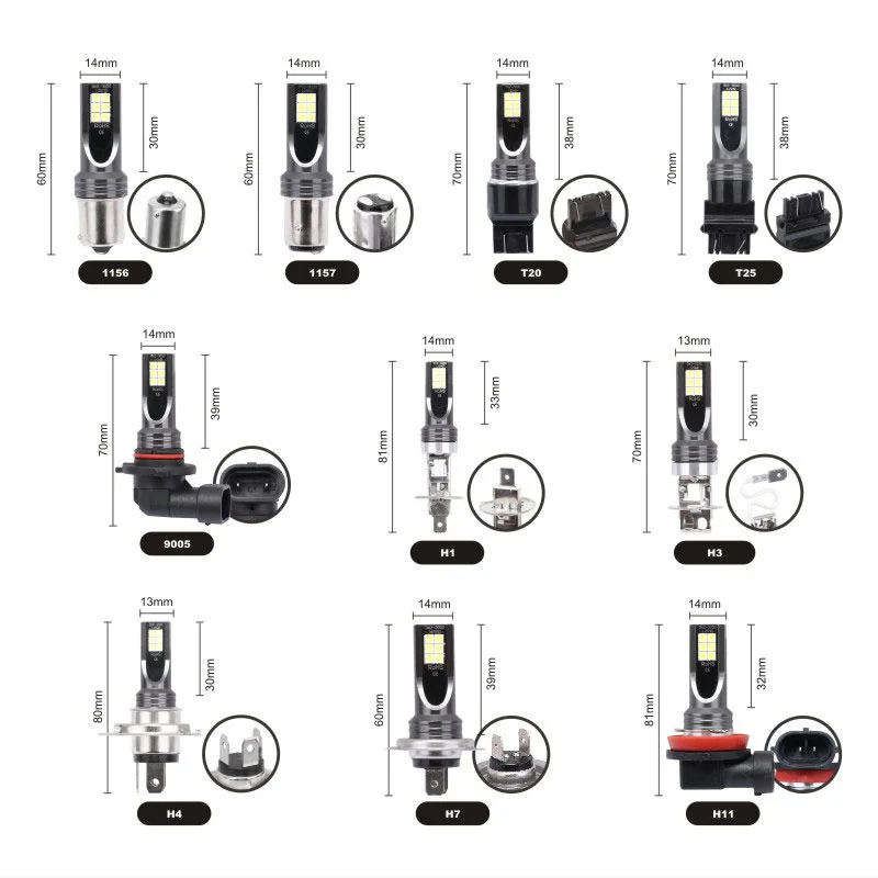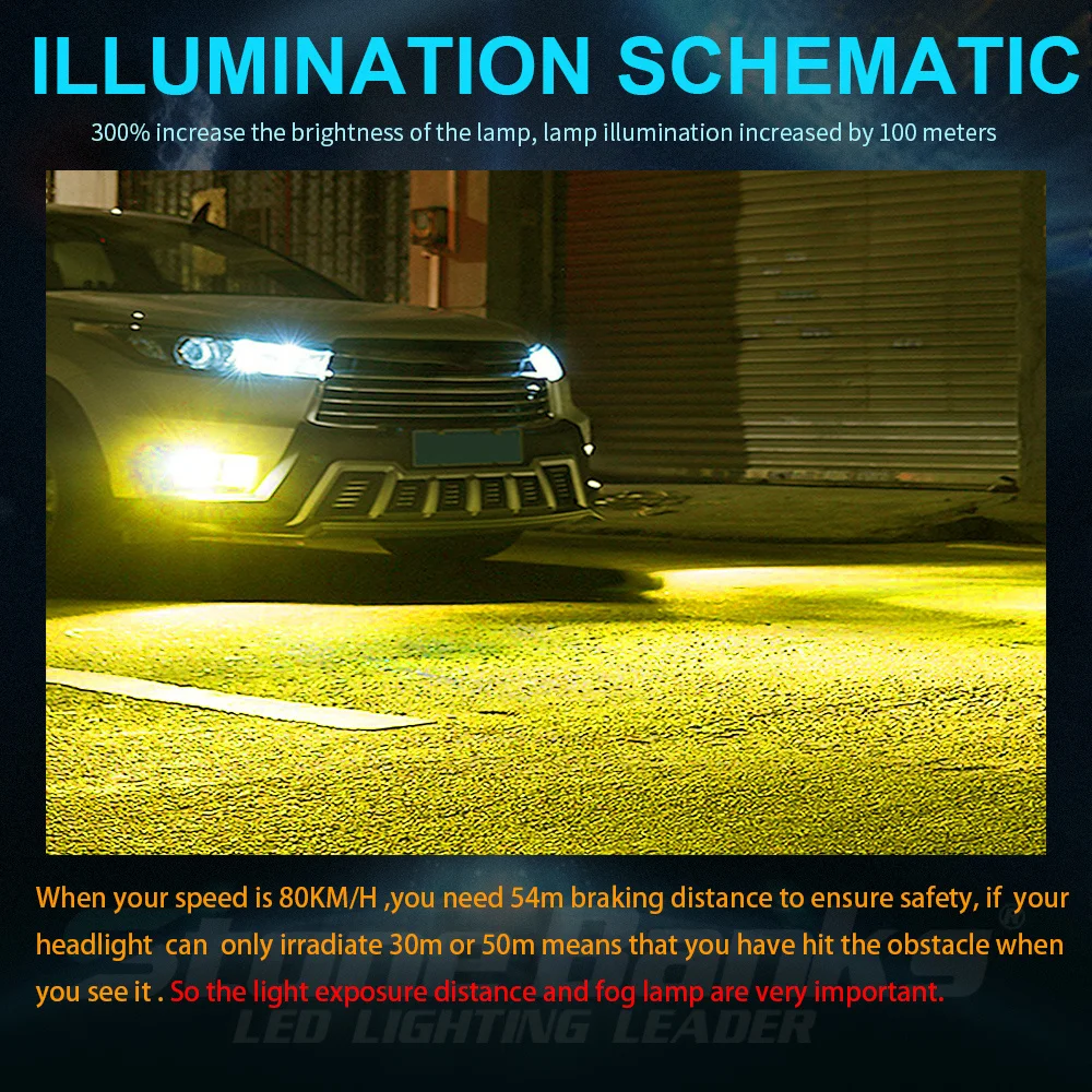 2 шт H8 H11 Светодиодный ные лампы H1 H3 H7 H4 HB3 9005 HB4 9006 H7 светодиодсветодиодный Противотуманные фары 6000k белый 3000k золотисто-желтый 8000K светло-голубой