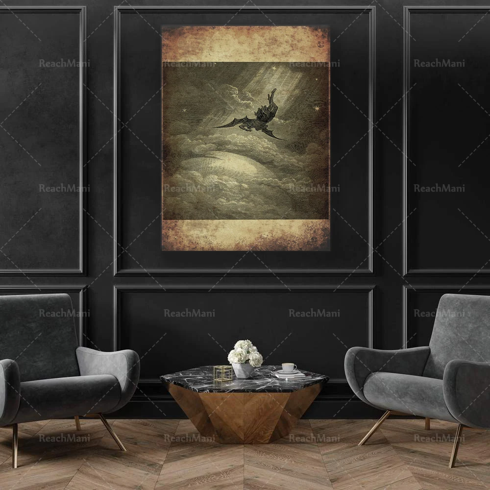 Принт Люцифера, оккультный плакат, декор ангела, сатаническая иллюстрация, готическое украшение, печать при ведьме, эзотерический домашний декор