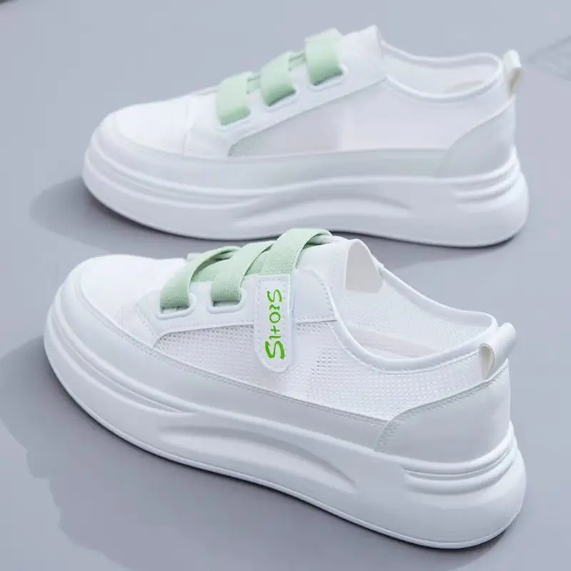 Сетчатые маленькие белые женские туфли, тонкие женские туфли на липучке, Новинка лета 2021, стильные универсальные туфли на толстой подошве