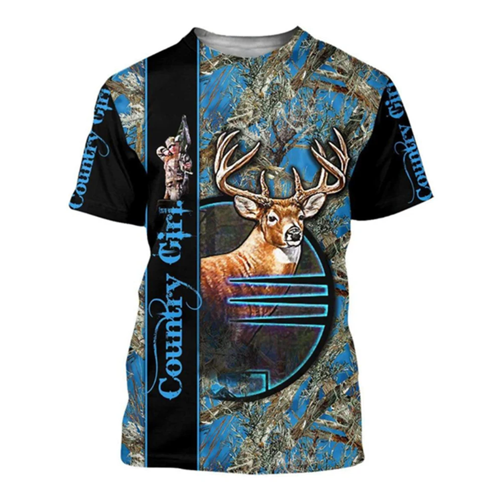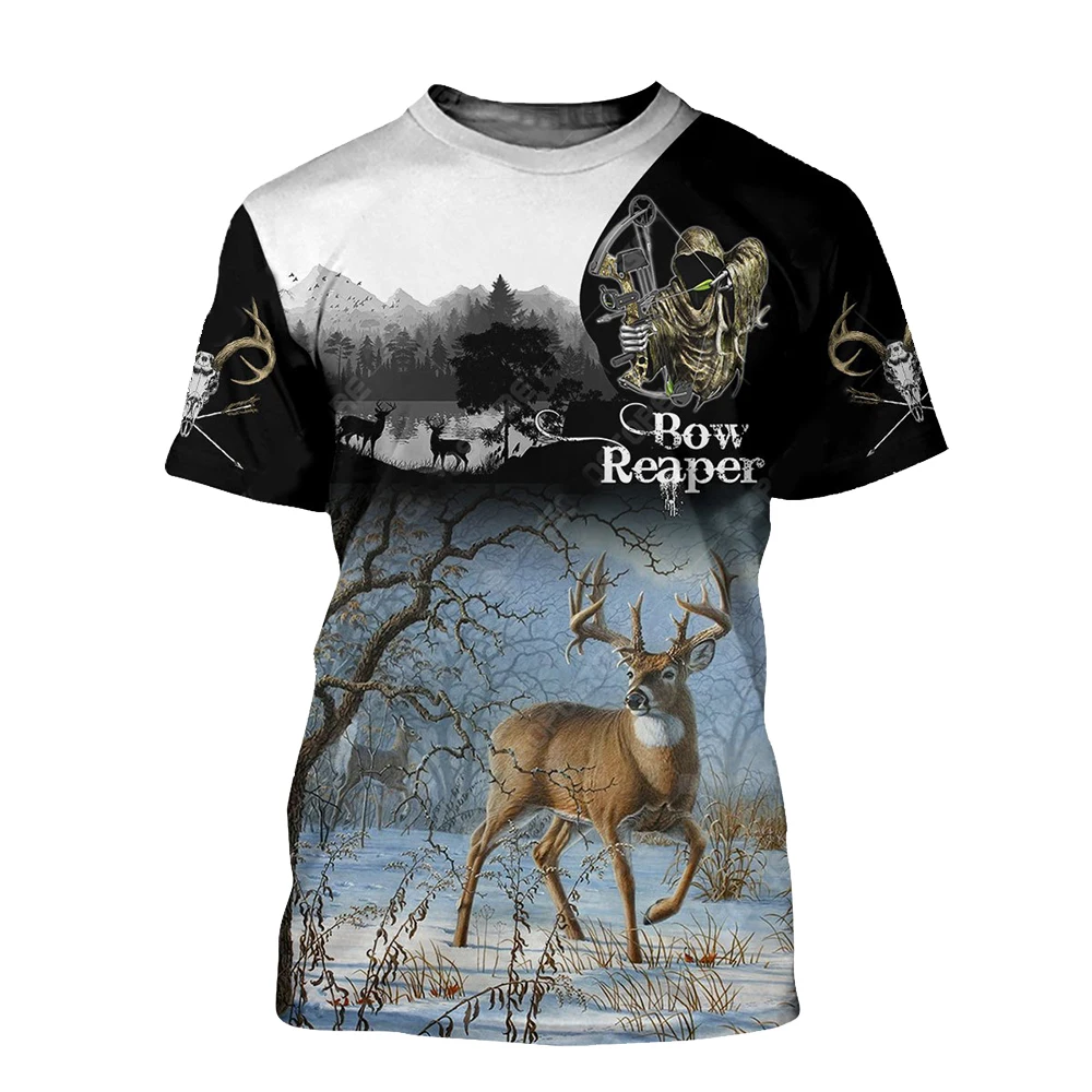 Футболка МужскаяЖенская камуфляжная с коротким рукавом, Повседневный пуловер с 3D рисунком оленя, охоты, оленя, лося, летняя уличная одежда