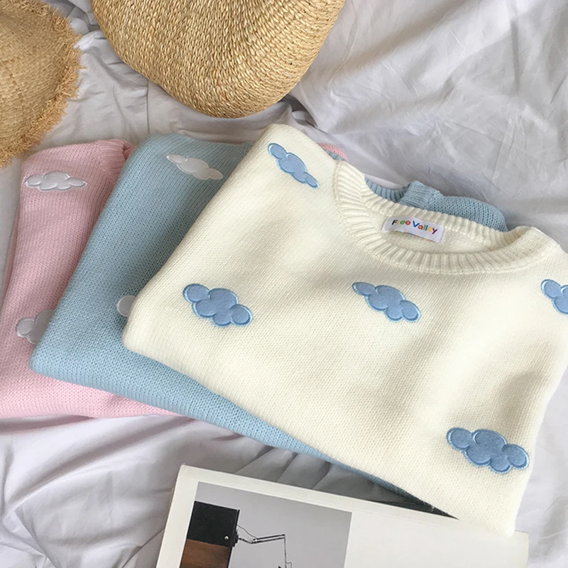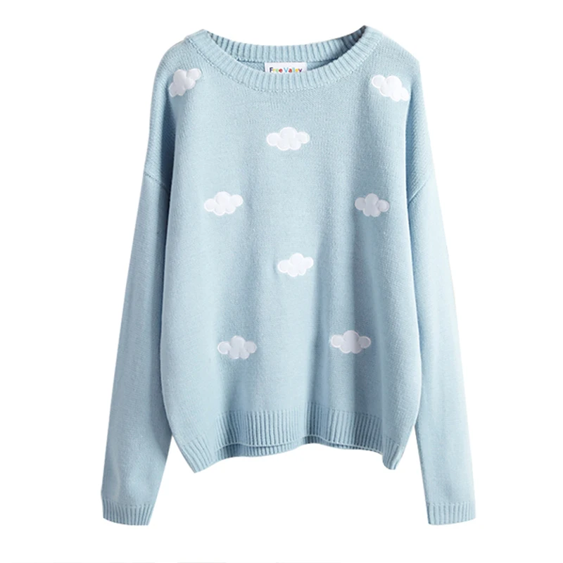Женский вязаный пуловер, свитер с облаками в Корейском стиле, зима ...