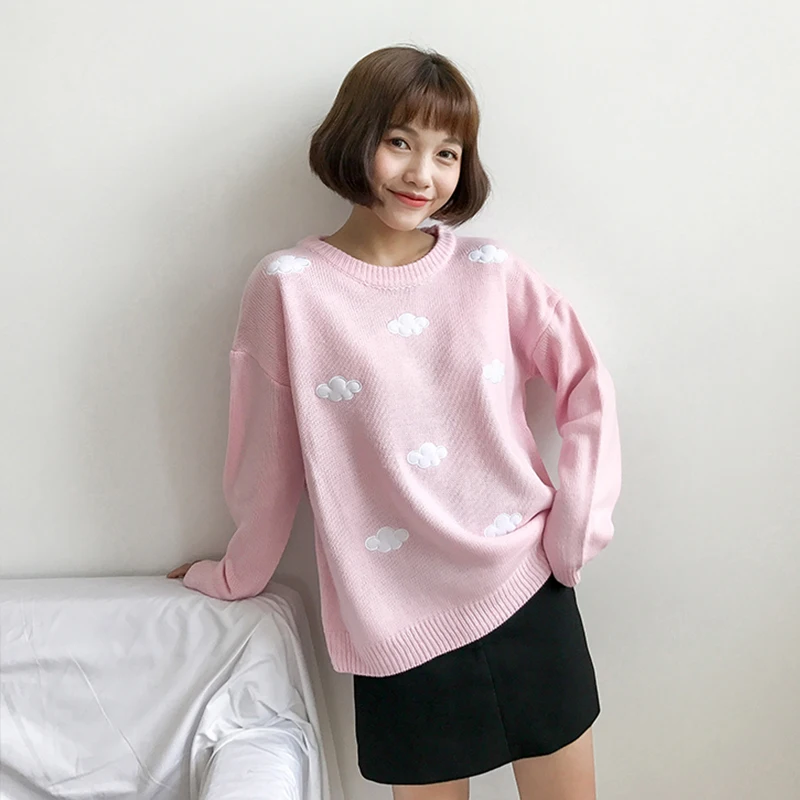 Женский кавайный винтажный свободный свитер Ulzzang для колледжа с рисунком облаков женский корейский Толстый милый свободный свитер в стиле панк Харадзюку одежда для женщин