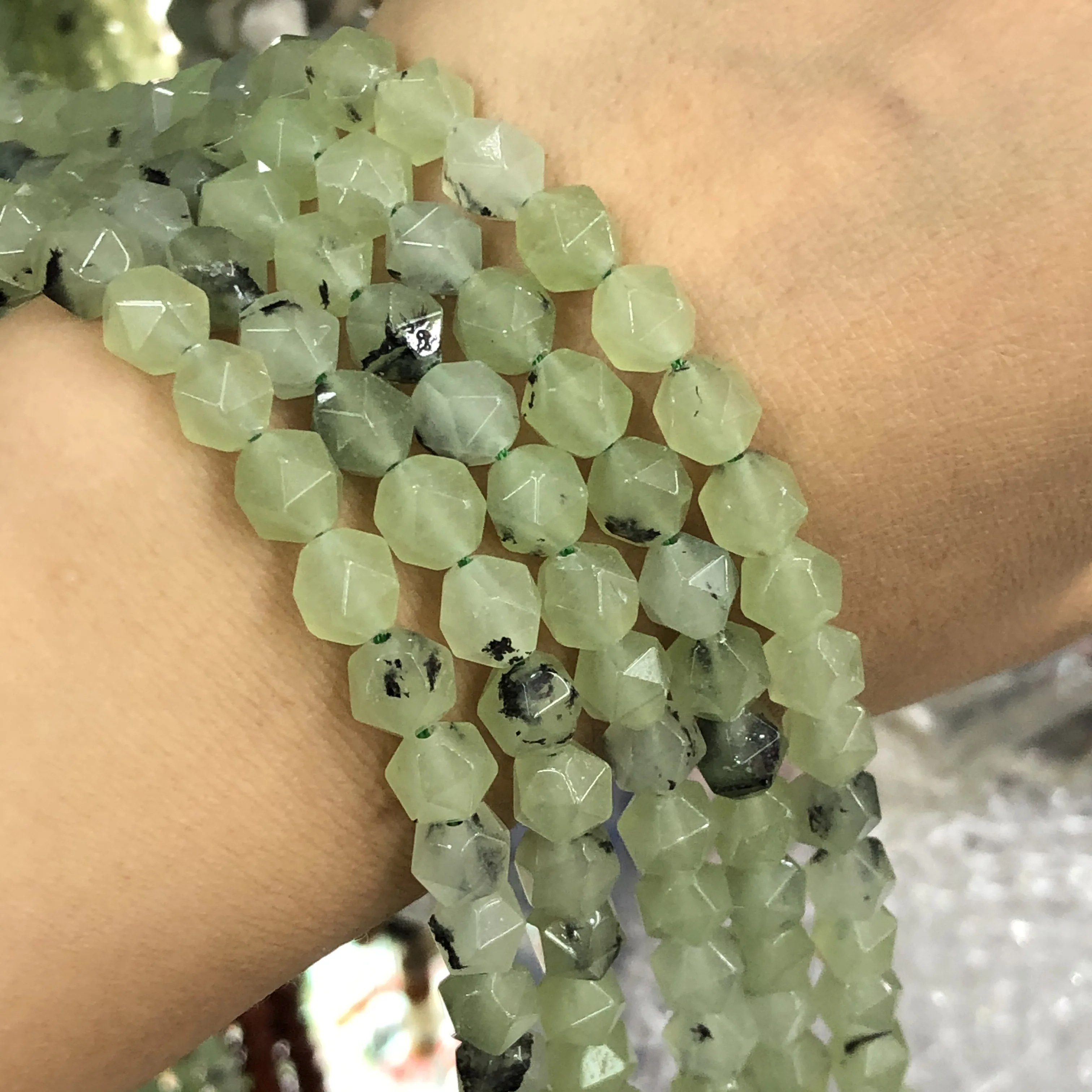 Бусины Из Натурального граненого зеленого пренита, кварца, для изготовления ювелирных изделий, браслетов, размером 6, 8, 10 мм