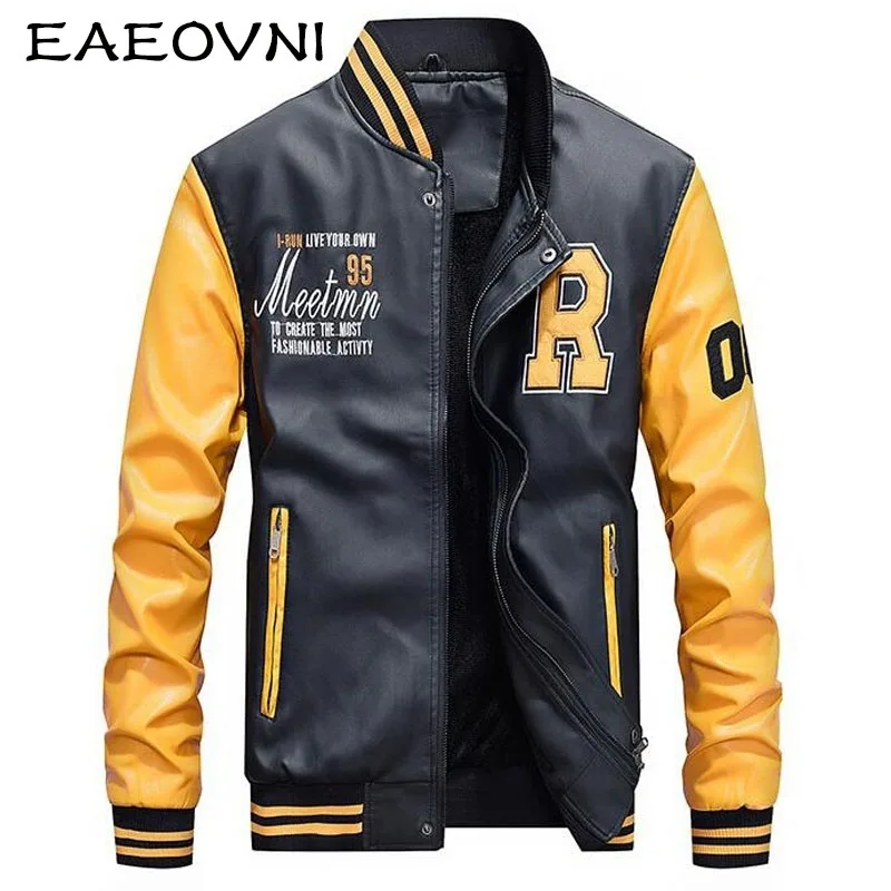 Мужская бейсбольная куртка, облегающая куртка из искусственной кожи...